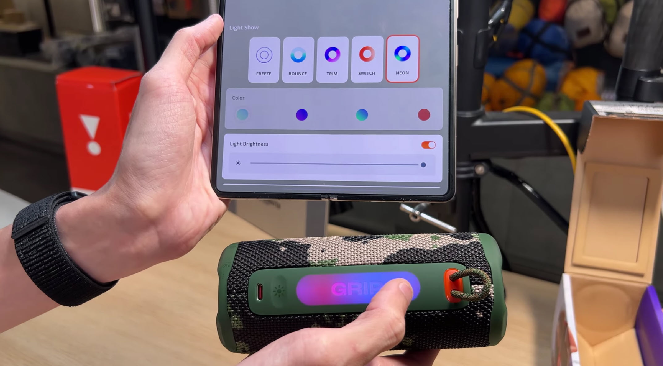 + Ngoài ra, JBL Grip còn được trang bị thêm dải đèn LED Ambient giúp loa đẹp mắt hơn trong những bữa tiệc tối, đi kèm với nhiều hiệu ứng để bạn tùy chỉnh thông qua app.