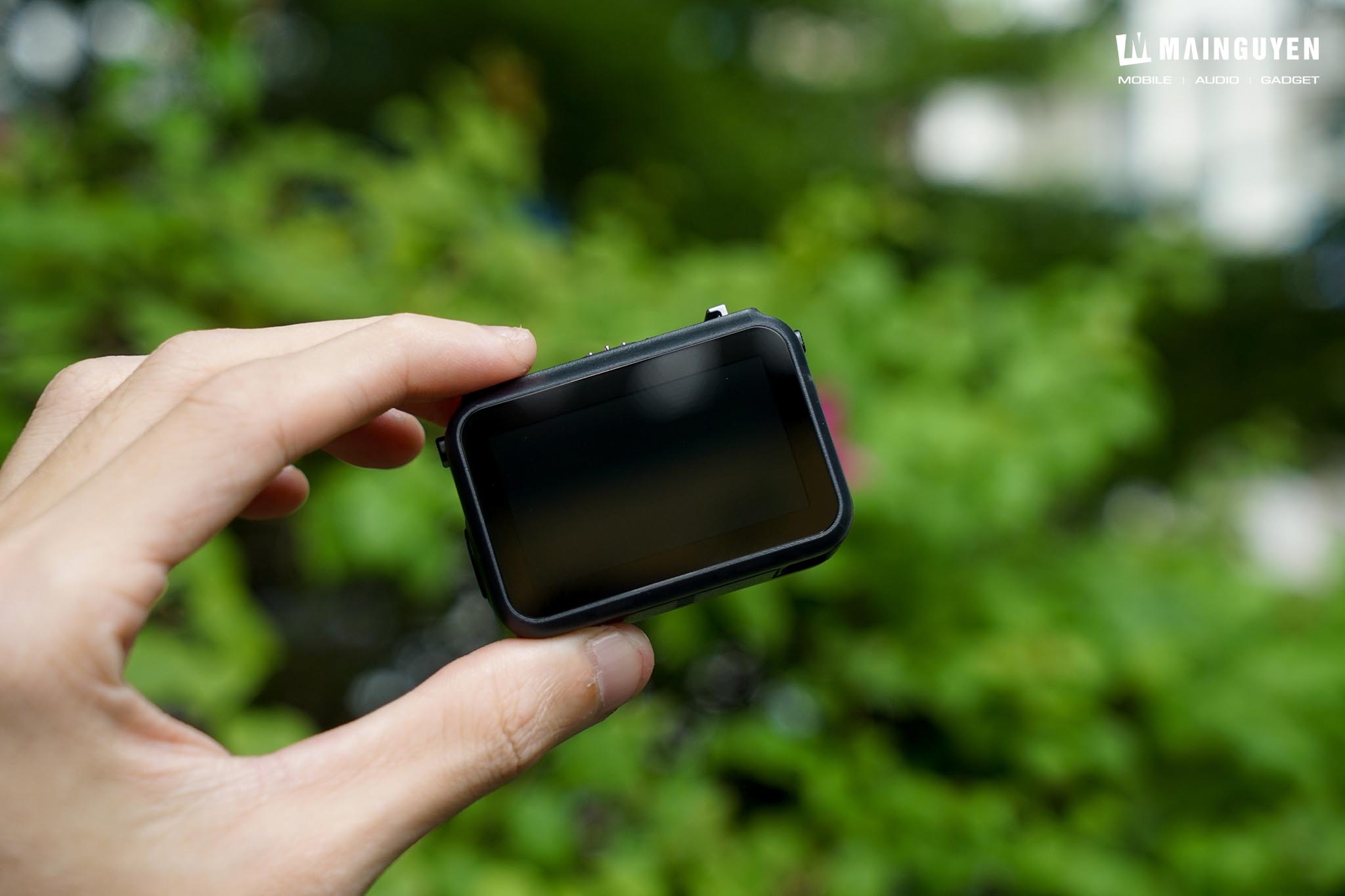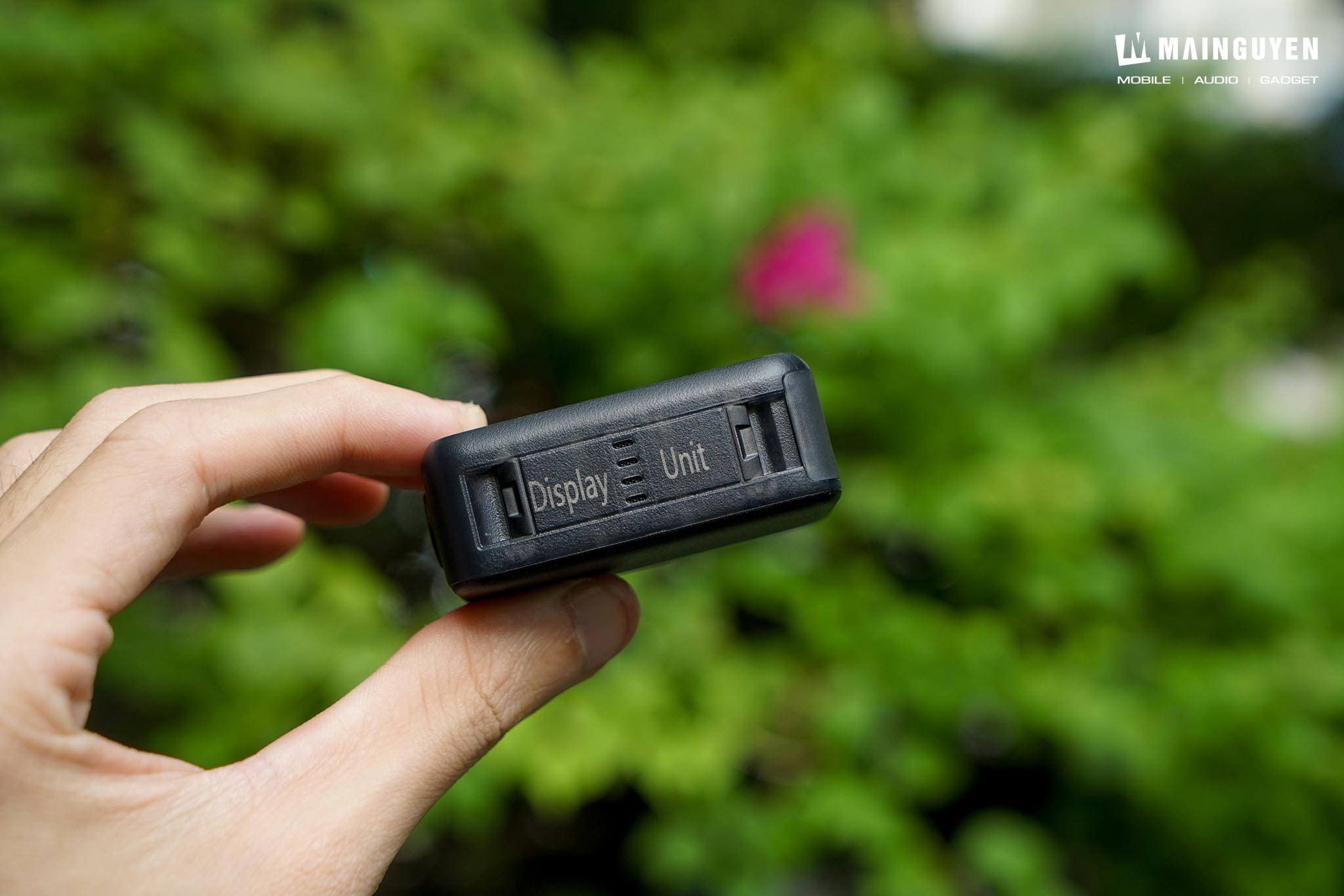 Tiếp đến là cụm vision dock với màn hình cảm ứng kích thước 1,96-inch độ phân giải 314 x 556, mật độ điểm ảnh 326ppi và có độ sáng tối đa 800cd/m2. Mặc dù vẫn chưa rõ khu vực màn hình sử dụng chất liệu kính gì, tuy nhiên mình vẫn khuyên bạn nên trang bị miếng dán PPF để bảo vệ việc trầy xước. Kích thước của cụm vision dock cũng rất nhỏ gọn (59.1×42.2×22.3 mm) và trọng lượng nhẹ chỉ khoảng 72g.