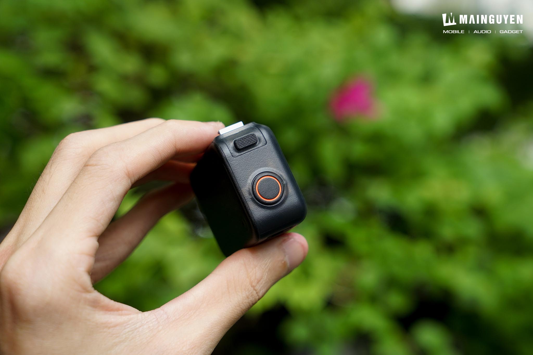 Toàn bộ thao tác chụp/quay/bật tắt nguồn và chuyển qua lại các chế độ trên Osmo Nano chỉ thông qua một nút bấm mềm duy nhất ở phía cạnh trên, có viền đỏ bao quanh để bạn dễ nhận biết và cho độ nẩy tốt. Điều này giúp những ai không quá rành về công nghệ, chẳng hạn như chị em phụ nữ vẫn dễ dàng làm quen và sử dụng nhanh chóng.