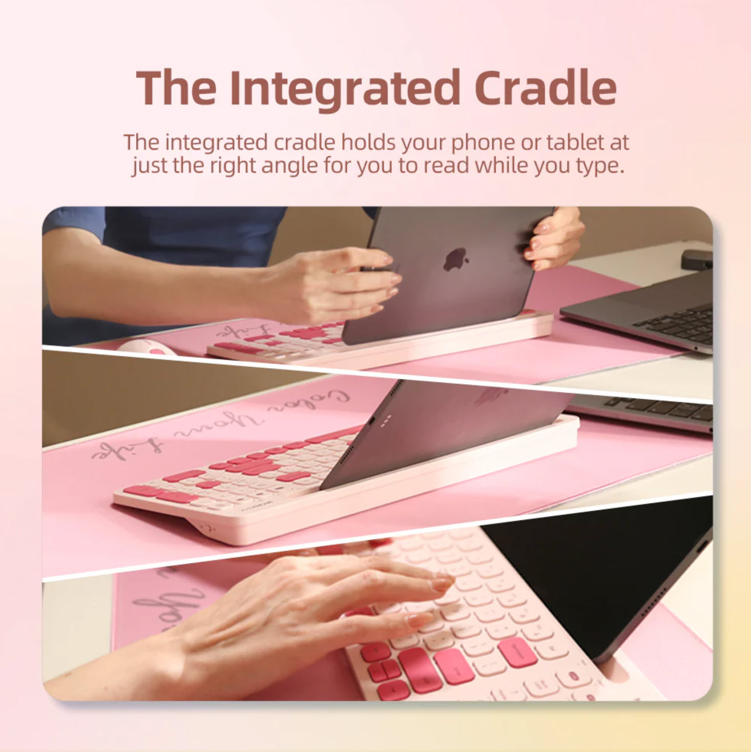Không chỉ sử dụng cho PC, laptop, bàn phím còn có rãnh để bạn đặt máy tính bảng hoặc điện thoại để sử dụng với bàn phím rất tiện lợi mà không cần phải mua thêm giá đỡ.