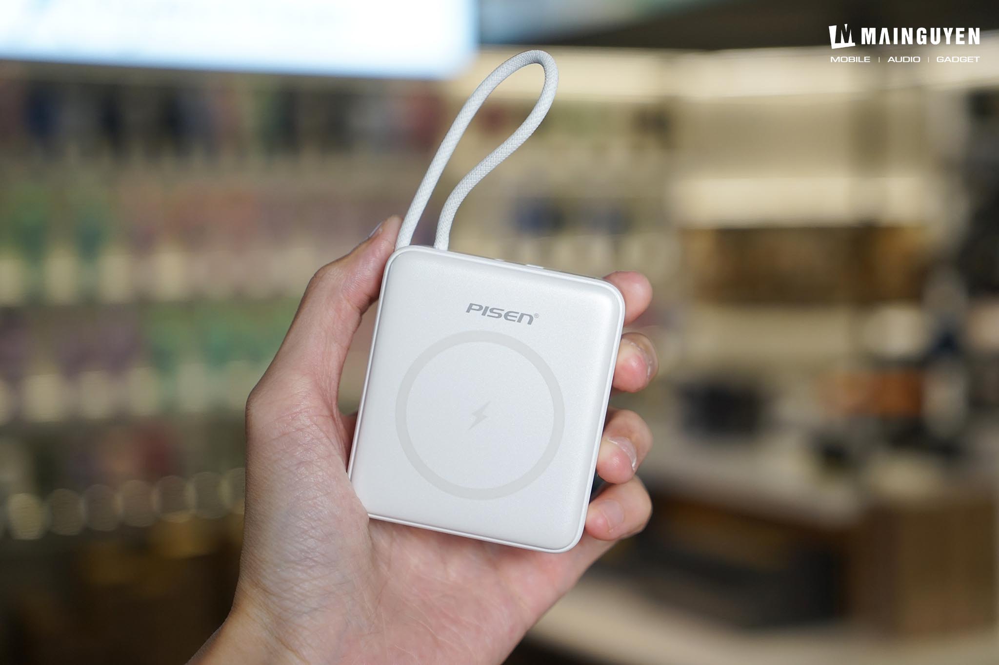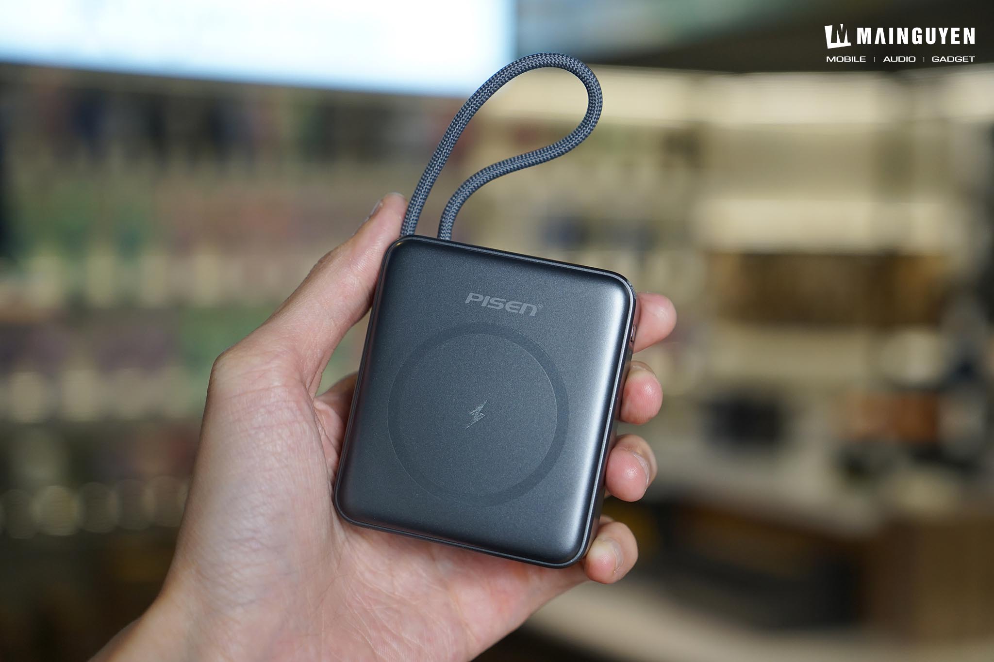 Ngoài sợi cáp sạc tích hợp, Pisen Quick Aircraft còn trang bị sạc không dây chuẩn Qi với công suất 15W, có hít nam châm, hữu ích khi bạn đang ở quán cà phê, trên bàn làm việc, hoặc bất cứ đâu mà không muốn cắm dây.