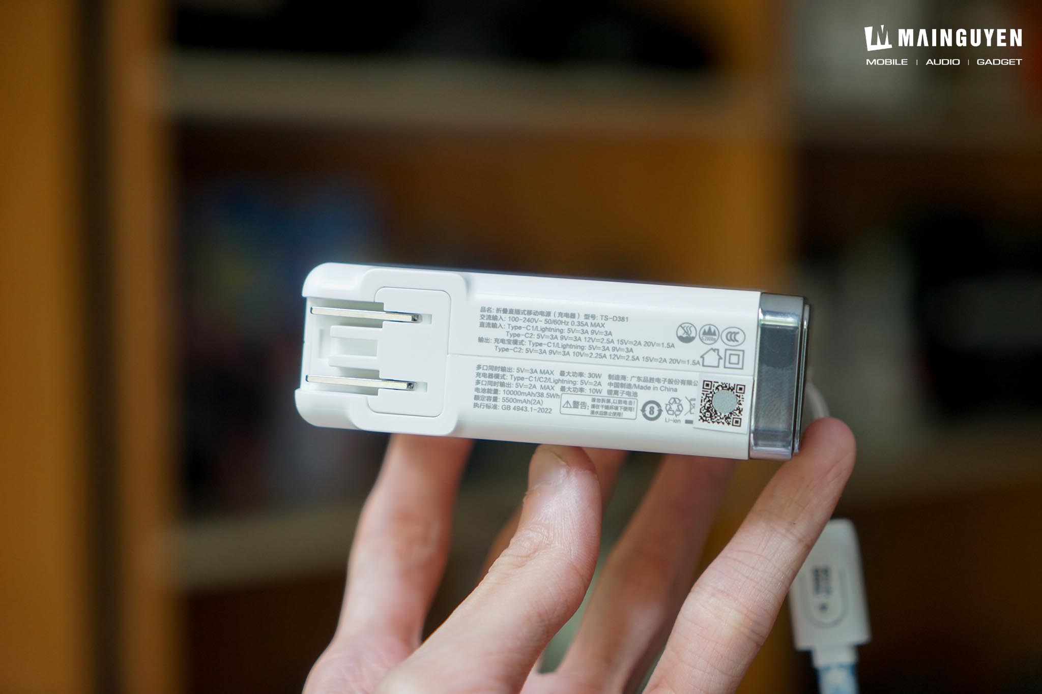 Điểm nổi bật tiếp theo là pin sạc dự phòng Pisen TS-D381 tích hợp chân cắm AC gập gọn, biến viên pin này thành một củ sạc tường để sạc đồng thời cho thiết bị di động và sạc cho chính viên pin. Khi không sử dụng, chân cắm sẽ được gập lại gọn gàng, không vướng víu.