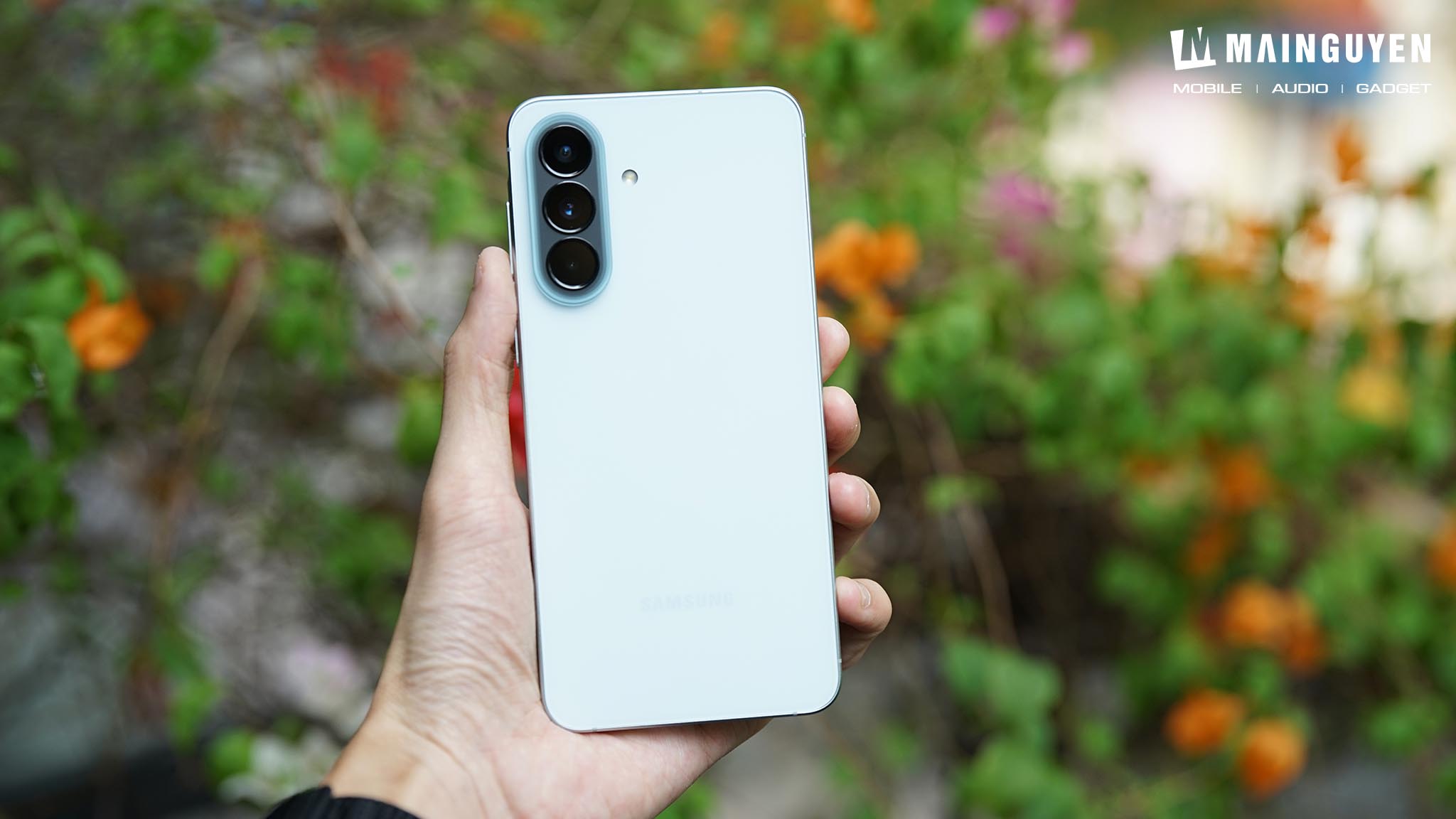 Phần khung viền kim loại của Galaxy A57 5G được hoàn thiện nhám mờ thay vì phây xước như thế hệ trước, mặt lưng kính cường lực, tổng bạn vẫn sẽ có một chiếc Galaxy A57 5G rất cao cấp, bền bỉ với chuẩn kháng nước và bụi bẩn IP67 để bạn yên tâm khi gặp trời mưa hoặc chẳng may rớt xuống nước ở độ sau khoảng 1,5 mét.
