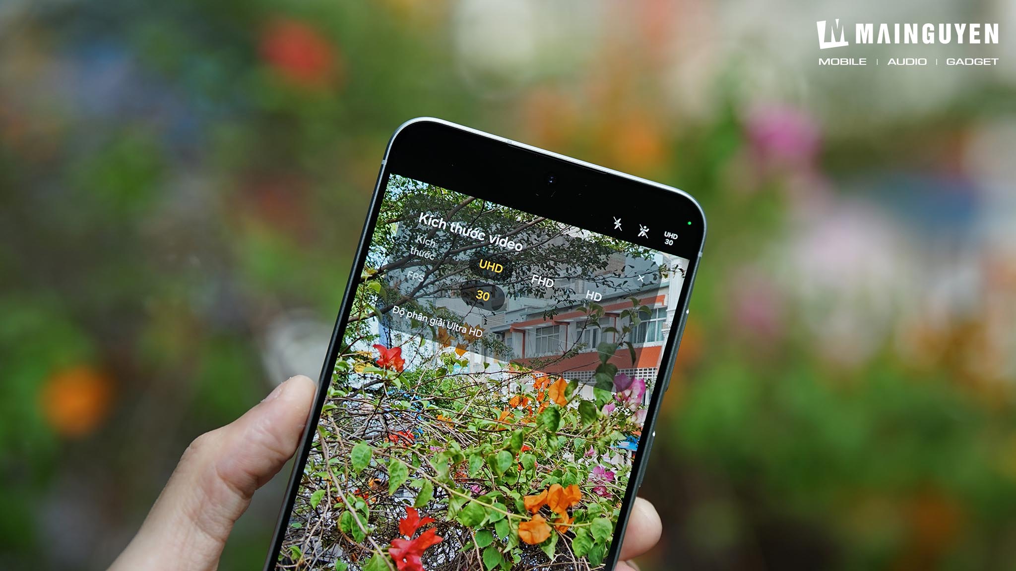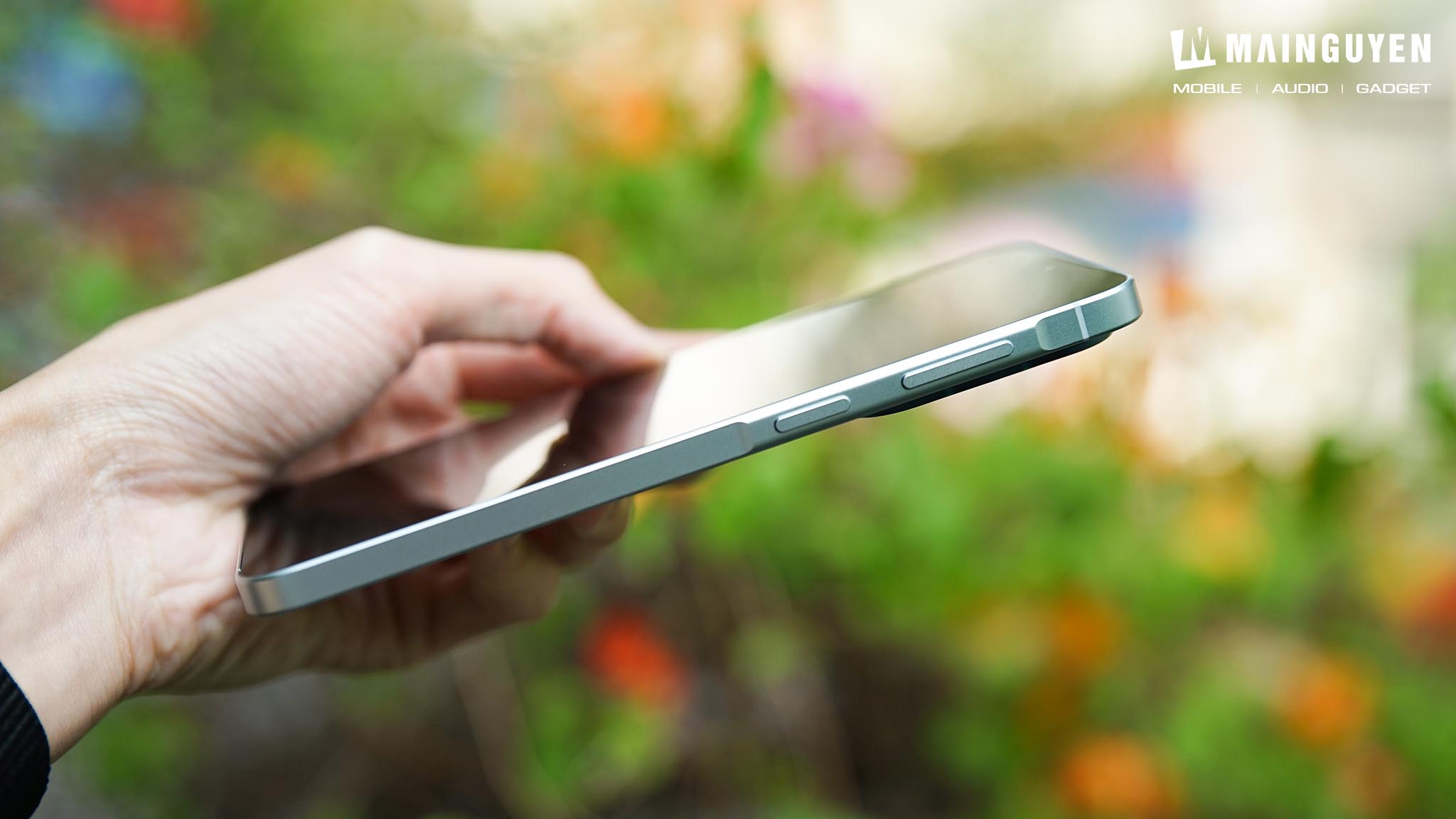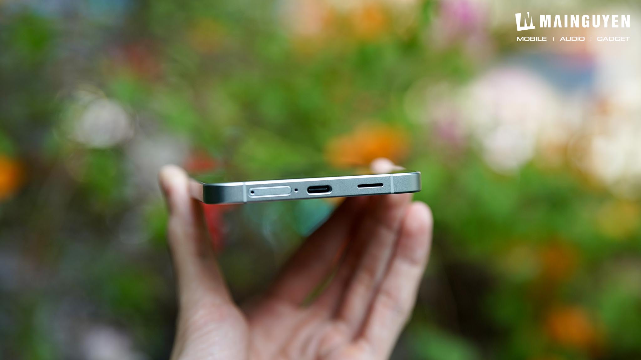 Cạnh dưới là cổng sạc Type-C, dải loa ngoài thiết kế rất tối giản và 2 mic thu âm, cạnh trên sẽ có thêm mic phụ, khe cắm SIM và thẻ nhớ.