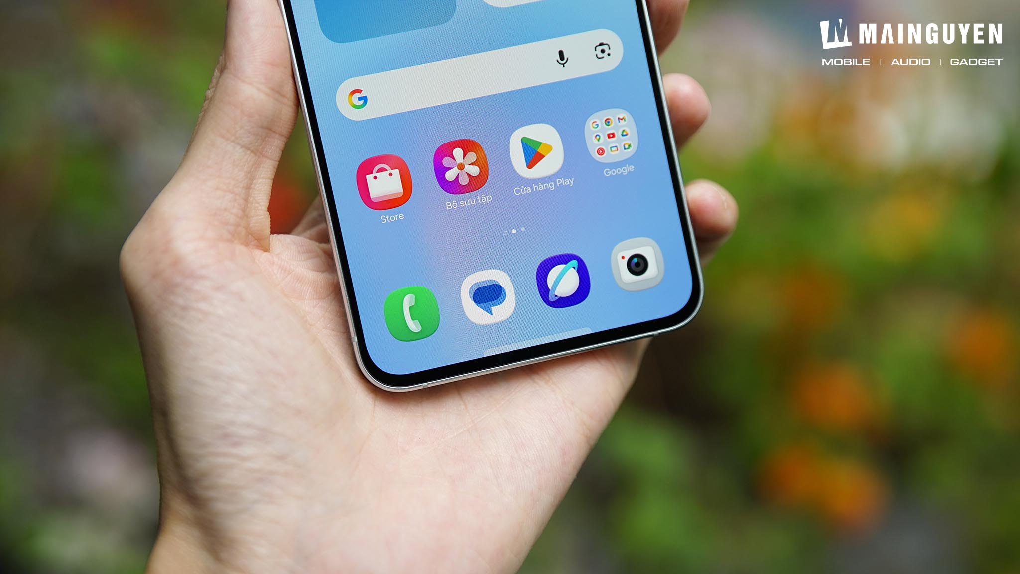 Về chất lượng hiển thị, Galaxy A57 5G có kích thước màn hình lớn 6,7-inch, độ sáng 1.200 nits, độ phân giải FullHD+, tấm nền Super AMOLED, tần số quét 120Hz, hỗ trợ HDR10+. Ngoài ra, viền màn hình trên Galaxy A57 5G cũng làm mỏng hơn nhưng không đáng kể, riêng viền dưới màn hình lại dầy hơn nên vẫn chưa được đối xứng.