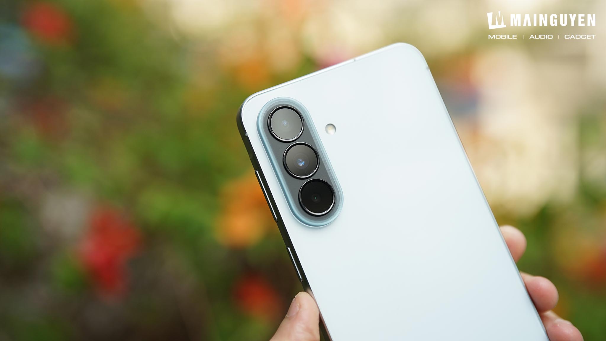 Hệ thống camera sau trên Galaxy A57 5G với cụm 3 ống kính bao gồm cảm biến chính 50MP, riêng ống kính chụp góc siêu rộng được nâng cấp lên 12MP, cuối cùng là ống kính chụp macro 5MP, kết hợp công nghệ chống rung OIS và VDIS kèm công nghệ xử lý hình ảnh bởi AI.