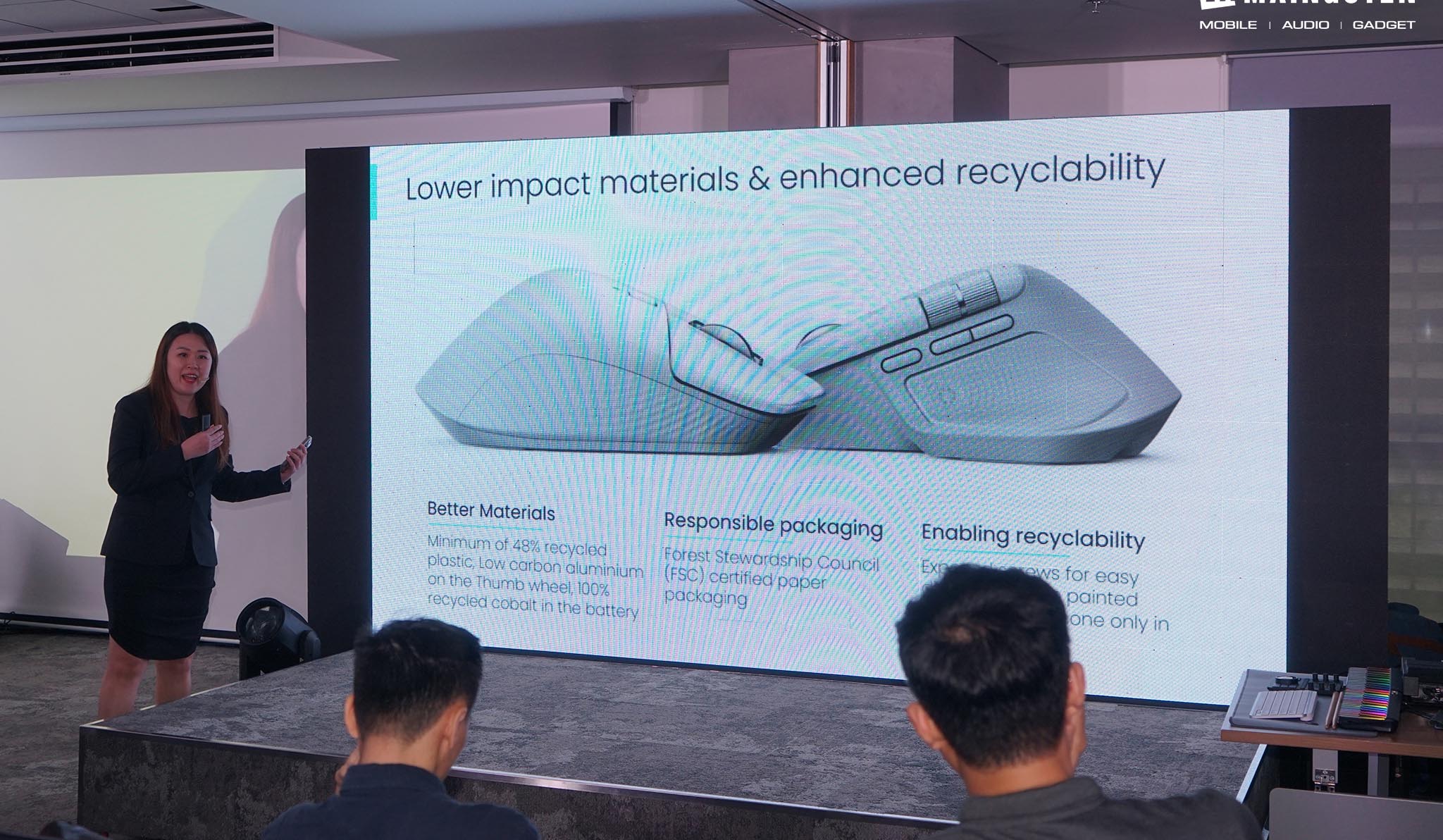 Không chỉ vậy, chuột không dây cao cấp Logitech MX Master 4 được chế tạo từ việc sử dụng 48% nhựa tái chế sau tiêu dùng, bánh lăn bằng nhôm carbon thấp và pin từ 100% cobalt tái chế, bao bì đạt chuẩn FSC™, hỗ trợ tái chế dễ dàng.