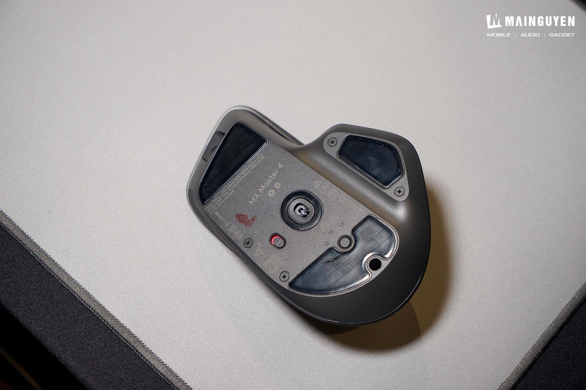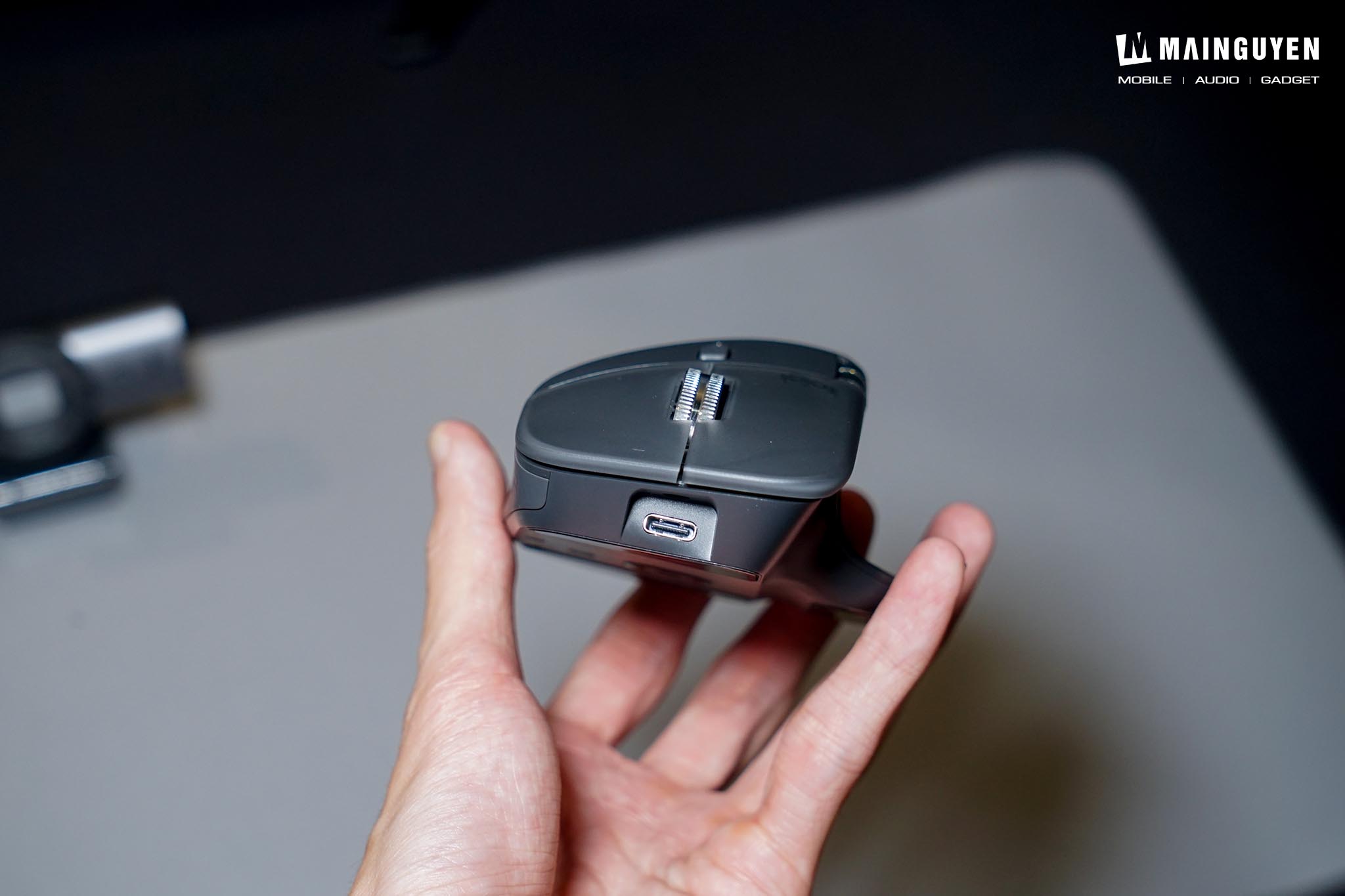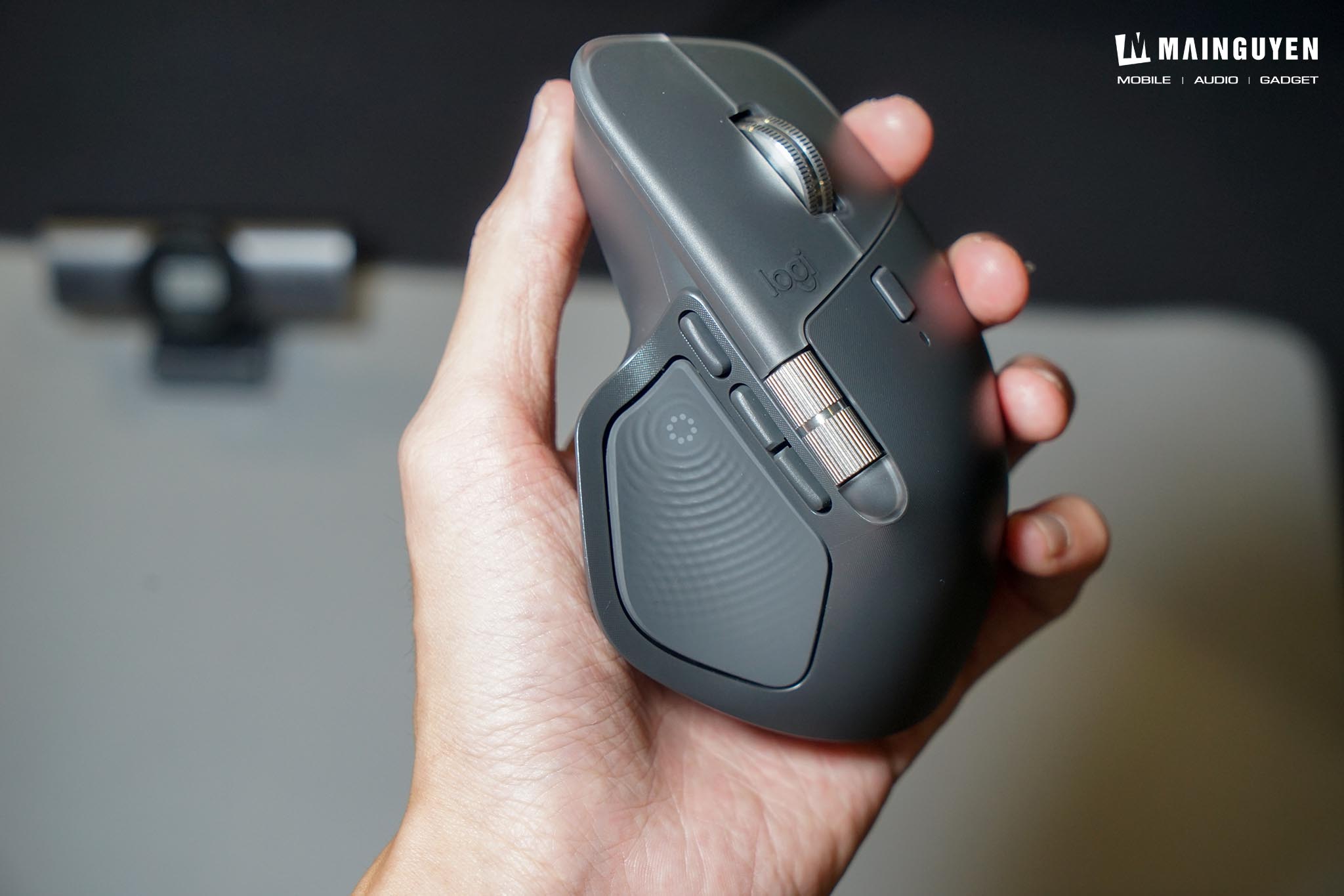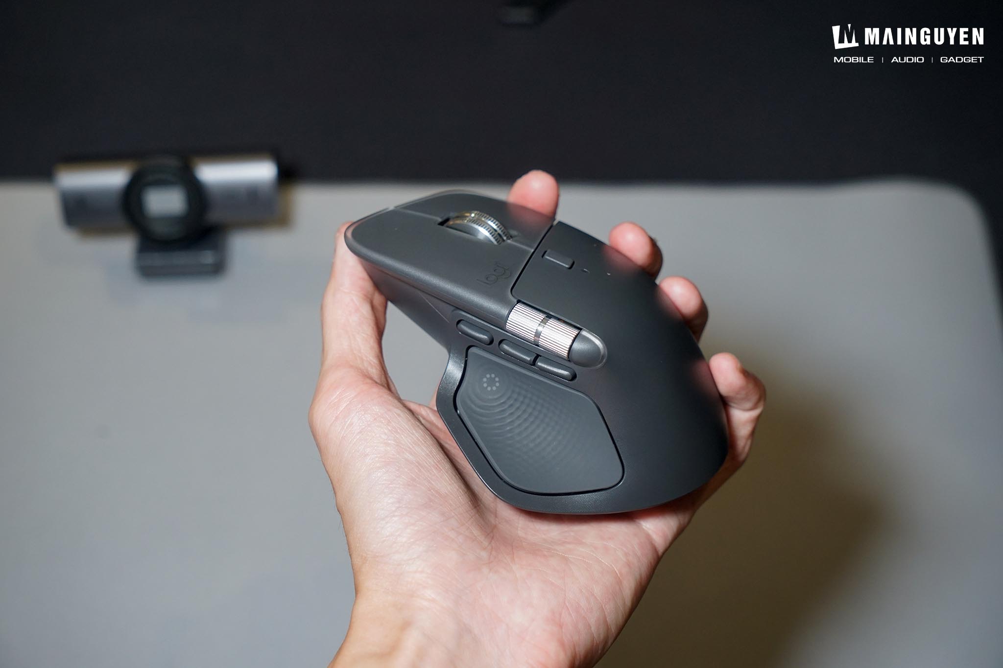 Chuột không dây cao cấp MX Master 4 vẫn giữ nguyên phom dáng công thái học (Ergonomic) đặc trưng đã làm nên tên tuổi của dòng MX Master, đảm bảo tay bạn được nâng đỡ hoàn hảo và thoải mái ngay cả khi làm việc liên tục nhiều giờ. Điểm nâng cấp mới là Logitech đã thay thế phần lớn lớp cao su mềm mại trên MX Master 3S bằng chất liệu nhựa cứng cáp hơn, kết hợp các đường nét tinh tế và hiện đại hơn. Sự thay đổi này không chỉ mang lại cảm giác cao cấp mà còn giúp chuột chống bám bẩn và mồ hôi tốt hơn, một điểm cộng lớn mà người dùng đã mong đợi.
