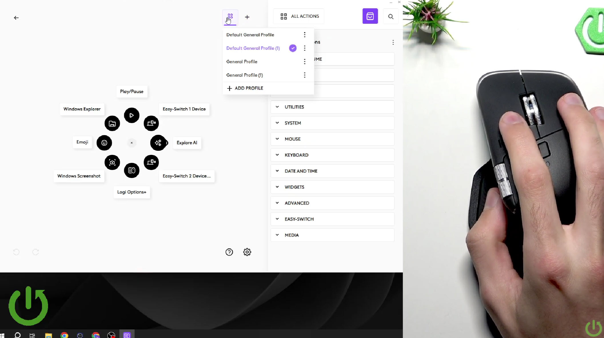 Điểm mới tiếp theo đó là Actions Ring, một tính năng phần mềm nhưng hoạt động dựa trên nút bấm vật lý, được kích hoạt qua phần mềm Logi Options+ giúp hiển thị các công cụ và phím tắt theo ngữ cảnh ứng dụng, giảm tới 63% thao tác lặp lại và tiết kiệm 33% thời gian so với thao tác thông thường. Khi được kích hoạt, một menu tắt kỹ thuật số sẽ hiển thị ngay tại vị trí con trỏ chuột, cho phép bạn truy cập tức thì các công cụ, lệnh hoặc Smart Actions theo từng ứng dụng. Thay vì phải di chuyển con trỏ lên thanh công cụ hoặc nhớ tổ hợp phím tắt, bạn có thể thực hiện các thao tác phức tạp (như mở/đóng cửa sổ, cắt/dán, hay các lệnh AI mới) chỉ trong một cú nhấp chuột và chọn.