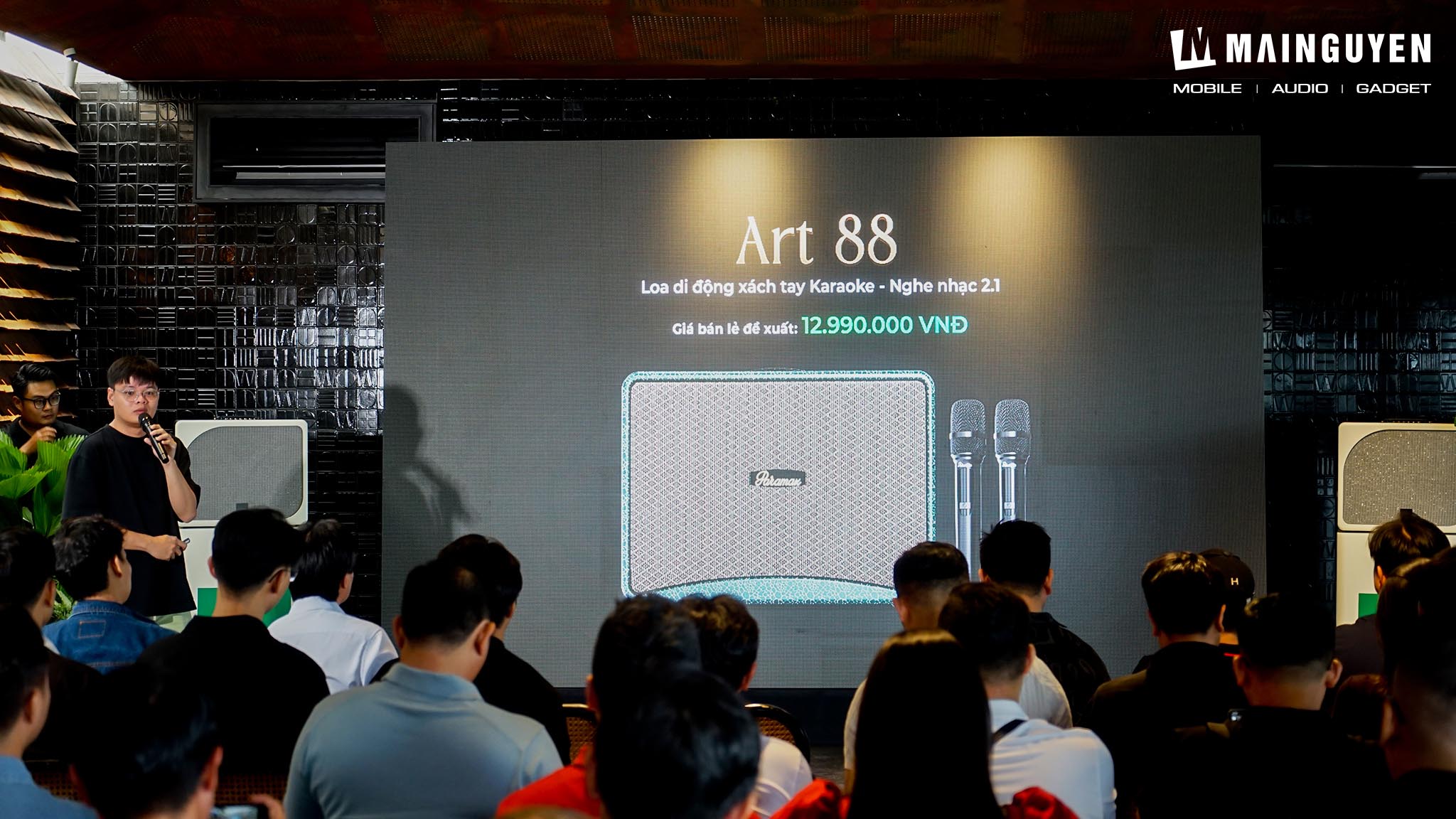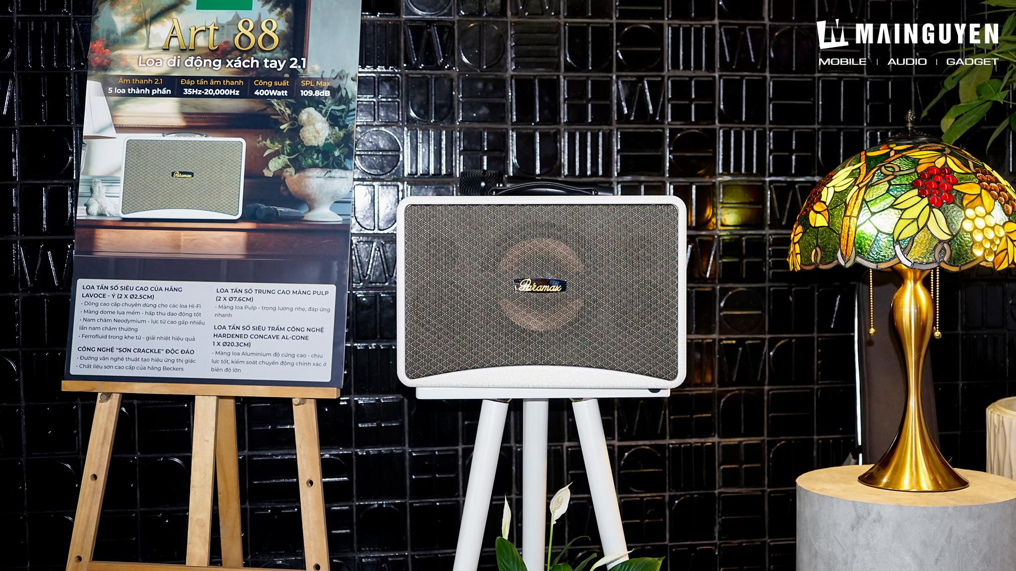 Sản phẩm mới tiếp theo của PARAMAX sẽ chính thức ra mắt thị trường vào đầu tháng 05 sắp tới đó là ART 88. Đây là mẫu loa karaoke di động xách tay mới nhất vừa được trình làng, nổi bật với cấu hình âm thanh 2.1 mạnh mẽ và thiết kế đậm chất nghệ thuật. Loa karaoke di động ART 88 sở hữu hệ thống lên đến 5 củ loa thành phần, mang lại dải âm tách bạch và đầy đặn hơn so với các dòng loa 2.0 thông thường: