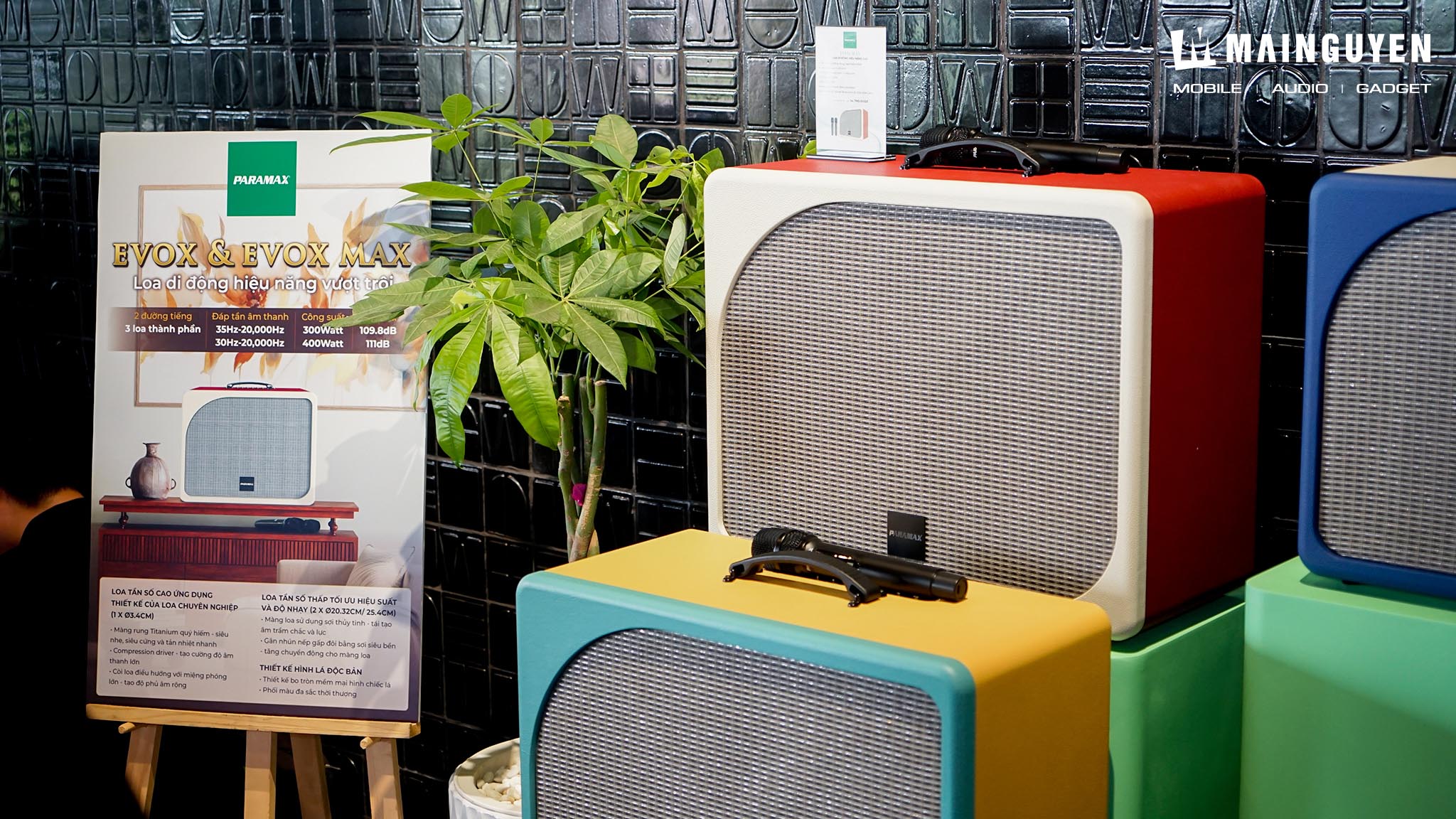 Ngoài việc giới thiệu các sản phẩm mới, sự kiện cũng mang đến các sản phẩm loa karaoke vừa mở bán chính thức gần đây và nhận được rất nhiều phản hồi tích cực từ người dùng. Như trên hình là dòng loa EVOX Series bao gồm hia phiên bản EVOX và EVOX Max. Nếu điểm chung của những mẫu loa karaoke dòng PARAMAX nói riêng đều mang phóng cách cổ điển và có phần trầm tính thì giờ đây người dùng sẽ có thêm sự lựa chọn mới trẻ trung và thời trang hơn, đó chính là mẫu Evox Series. Thay vì chỉ đơn giản là hình khối hộp có phần nhàm chán, Evox lấy cảm hứng từ hình thái chiếc lá với đường bo cong mềm mại và dầy ở một góc phía mặt trước, mang lại hiệu ứng thị giác lạ mắt và thời trang hơn hẳn. Tuy nhiên, bạn cần lưu ý mẫu loa Evox tương đối nặng và khá to. Bạn có thể xem lại bài trên tay chi tiết mẫu EVOX tại đây.