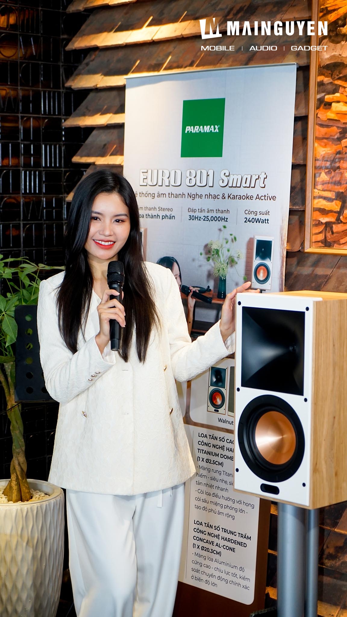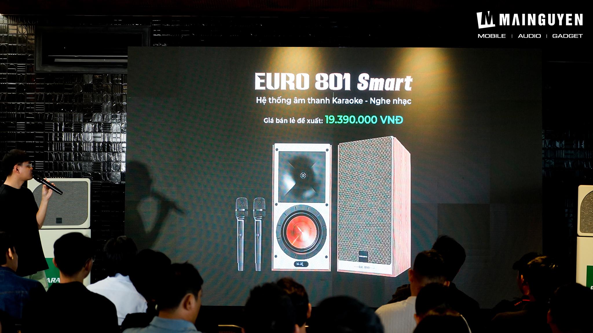 Tâm điểm của sự kiện là dòng loa Bookshelf chủ động (Active) mang tên EURO 801 SMART, là một trong những sản phẩm chiến lược mới nhất vừa được giới thiệu trong hệ sinh thái loa "thế hệ mới" của hãng. Sản phẩm được định vị là mẫu loa bookshelf chủ động (active) mang phong cách âm thanh Hi-Fi nhưng tích hợp đầy đủ các giải pháp giải trí hiện đại, tích hợp sẵn amply và trang bị kèm sẵn micro không dây, tiết kiệm không gian, không cần phối ghép phức tạp.