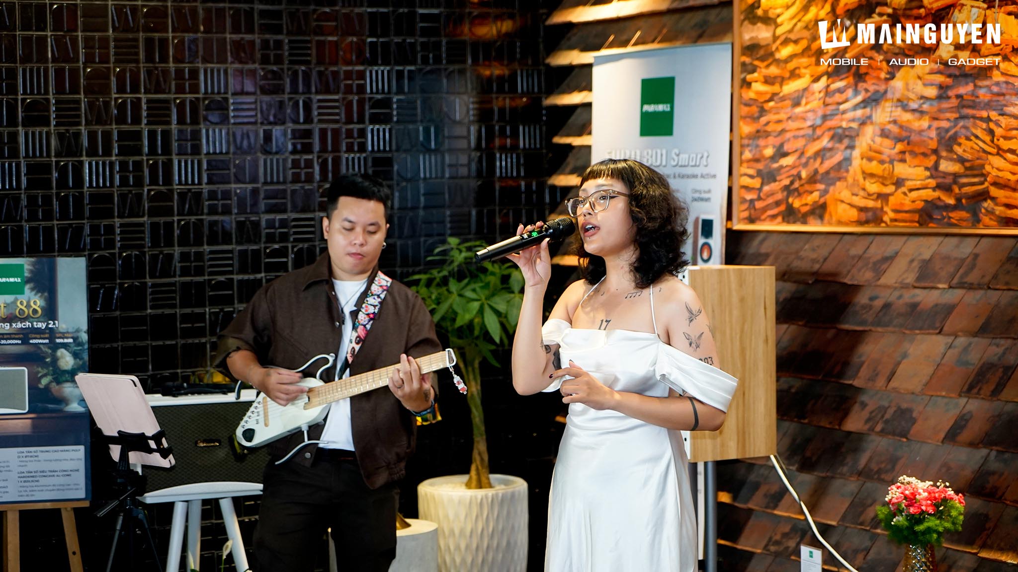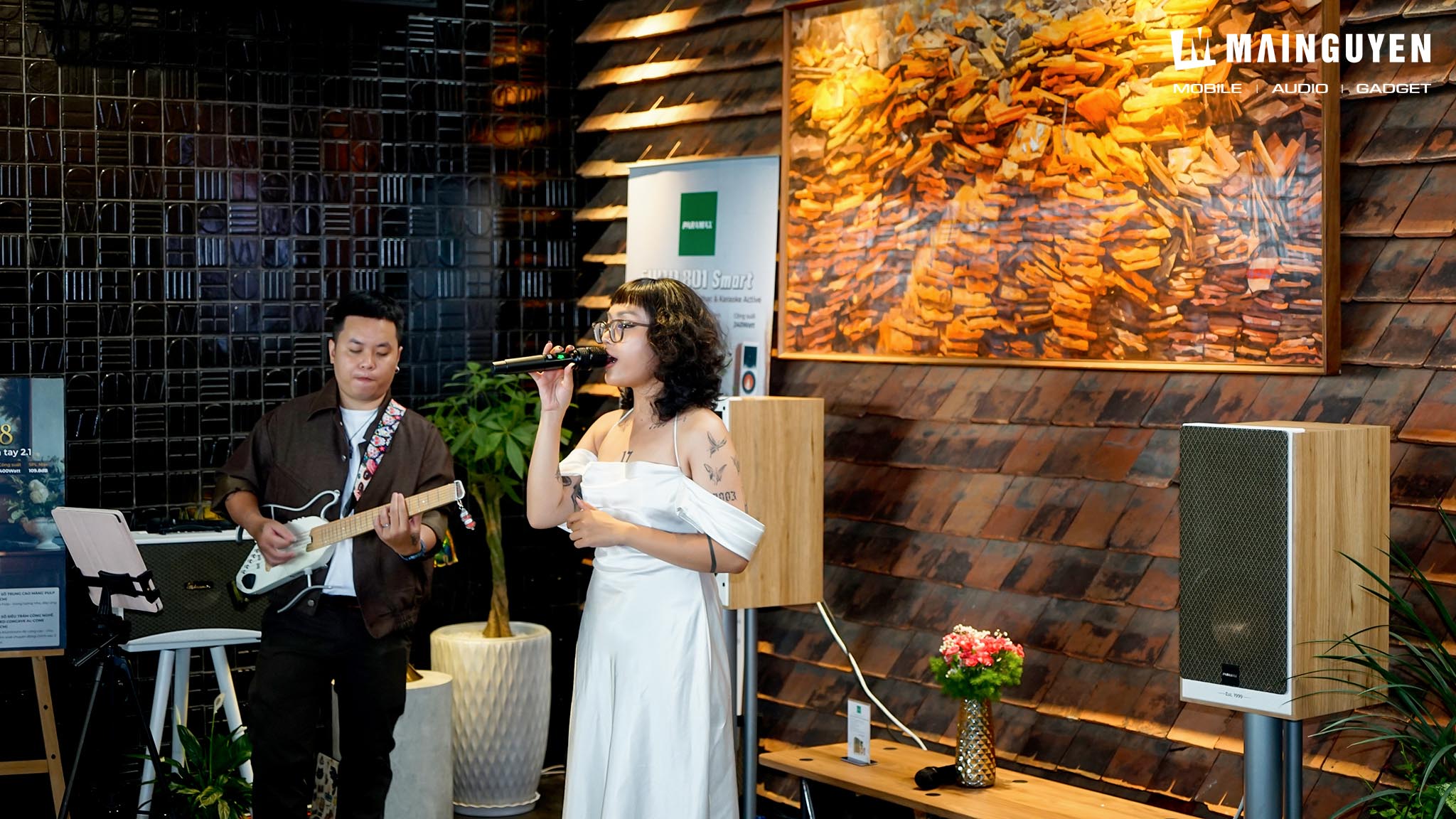 Khách tham dự được trải nghiệm thực tế chất âm của loa Active Bookshelf EURO 801 SMART hoàn toàn mới do ca sĩ khách mời thể hiện.