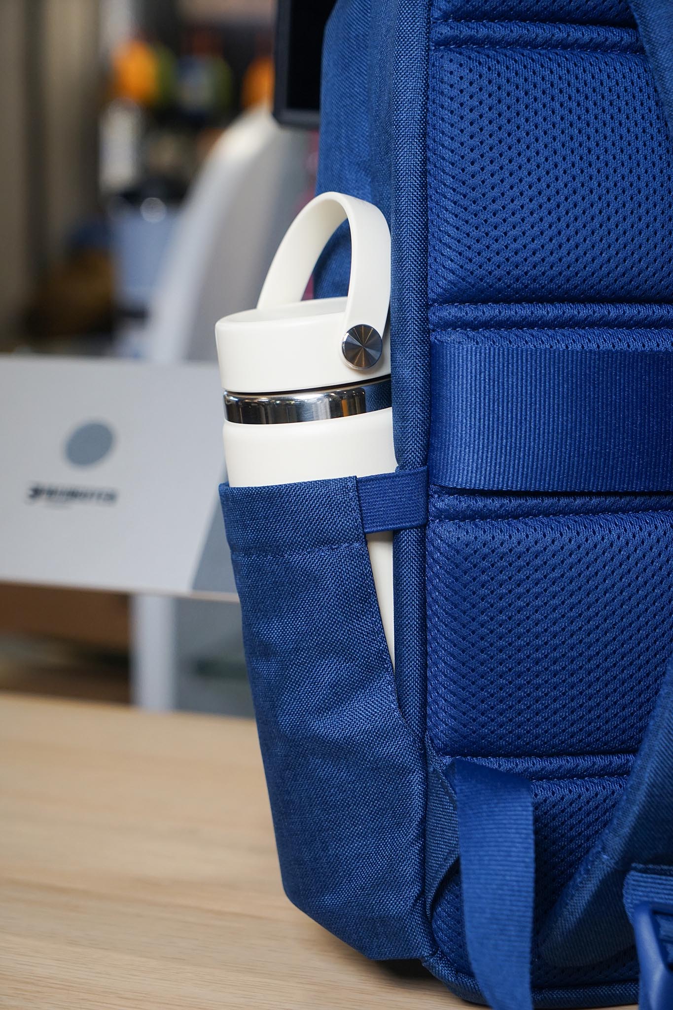 Hai bên hông balo Crosstown Backpack 20L sẽ có ngăn đựng bình/ly giữ nhiệt hoặc chai nước, thậm chí là cất gọn dù để che nắng che mưa.