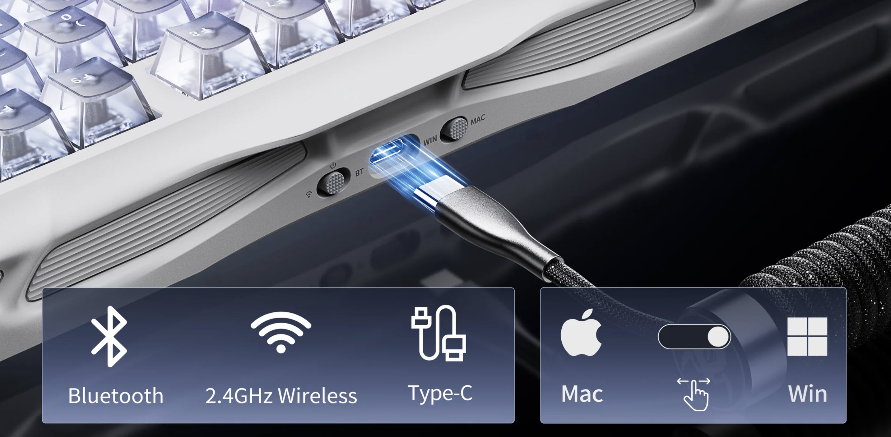 Tính đa dụng là điểm cộng thêm trên bàn phím cơ K1 Lite Crystal Aurora khi hỗ trợ đến 3 chế độ kết nối khác nhau: