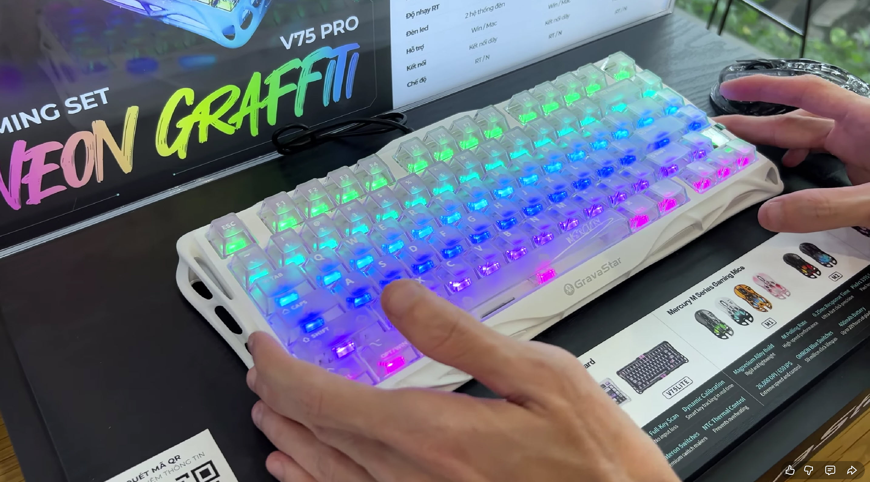 Trên tay bàn phím cơ Gravastar Mercury K1 Lite phiên bản Crystal Aurora