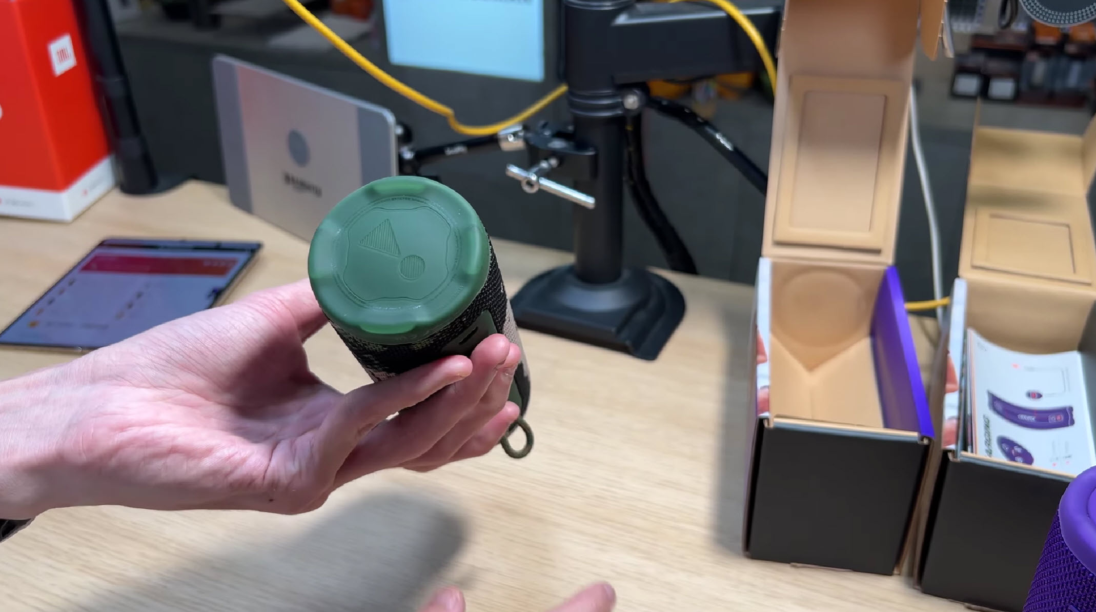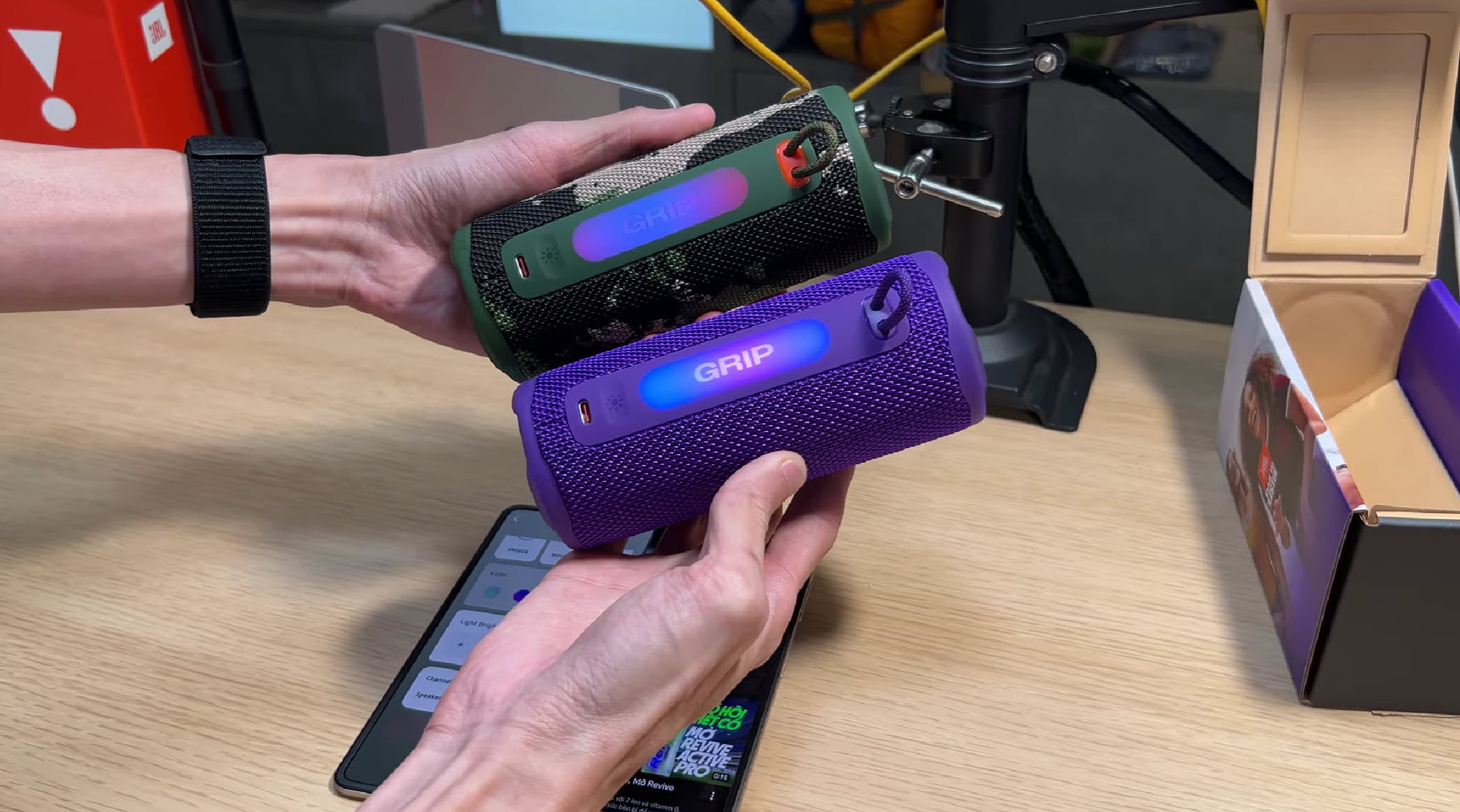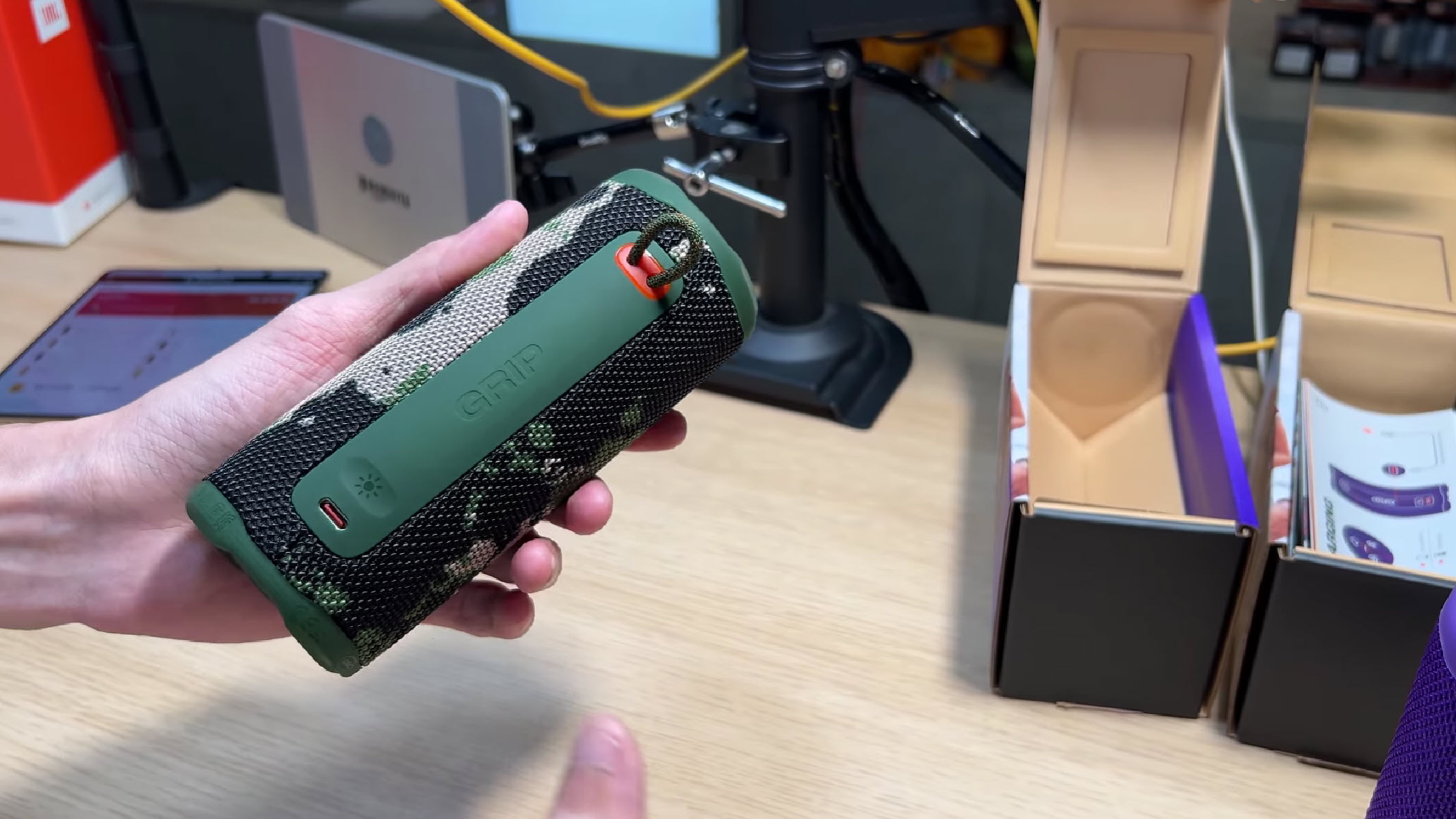 Cuối cùng, loa JBL Grip có công suất tối đa 16W, kết hợp với công nghệ AI Sound Boost, mặc dù không có loa thụ động (passive radiator) lộ thiên ở hai đầu như mẫu Flip 7 nhưng vẫn đảm bảo xử lý tốt riêng dải bass đánh chắc, gọn, không bị lùng bùng. Ngoài ra, kết nối không dây Bluetooth 5.4 kết hợp tính năng Auracast giúp loa JBL Grip không chỉ kết nối không dây ổn định và xa hơn, mà còn giúp kết nối không dây với rất nhiều loa khác nhau của JBL có hỗ trợ tính năng Auracast để trải nghiệm âm thanh stereo cũng như tăng công suất lớn hơn khi ở ngoài trời.