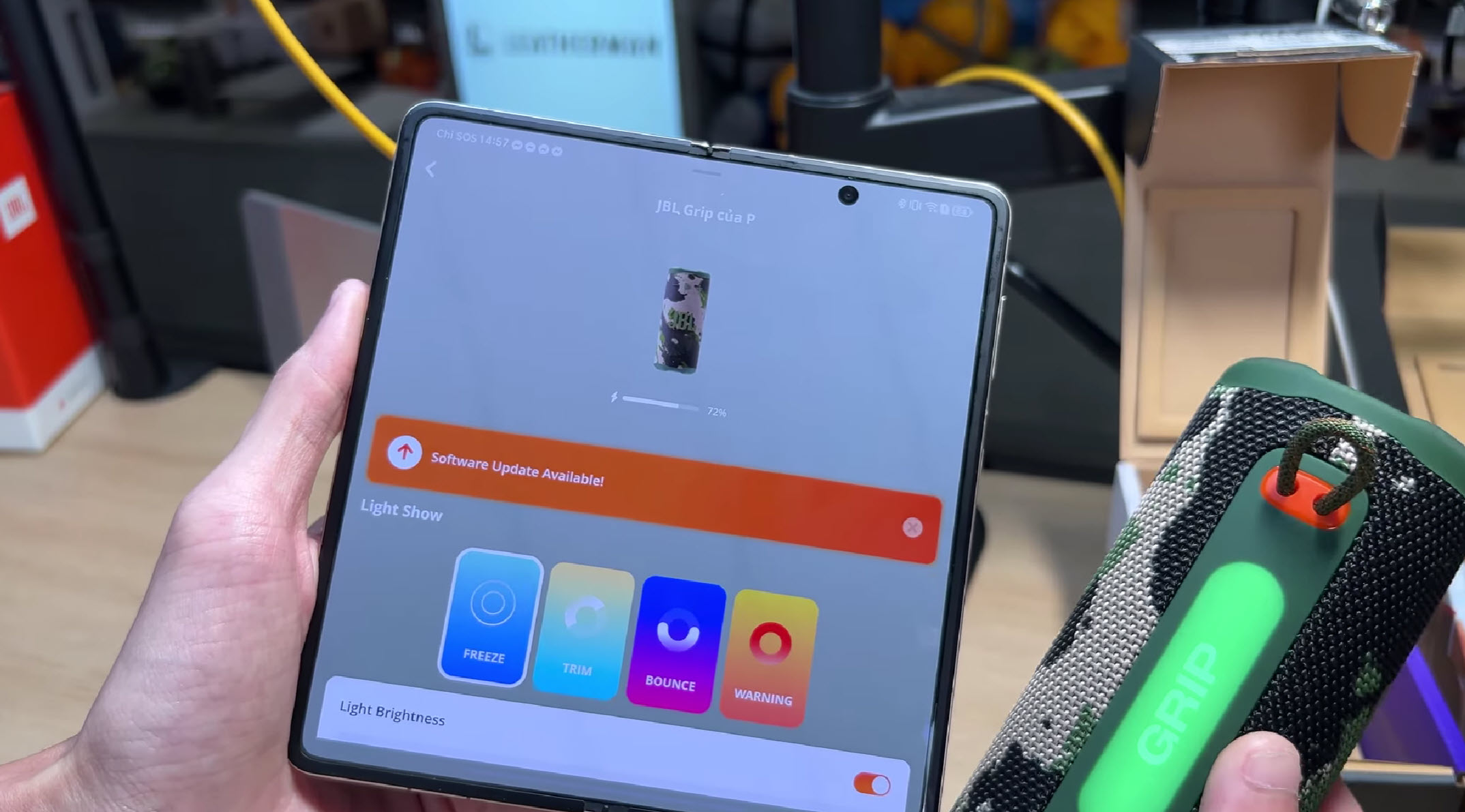 Bạn cũng nên kết nối loa JBL Grip với app JBL Portable trên thiết bị di động để cập nhật phần mềm lên phiên bản mới nhất trước khi sử dụng ở lần đầu tiên, hỗ trợ Android và iOS, cũng như mang đến nhiều tùy chỉnh EQ và các tính năng bổ sung khác.