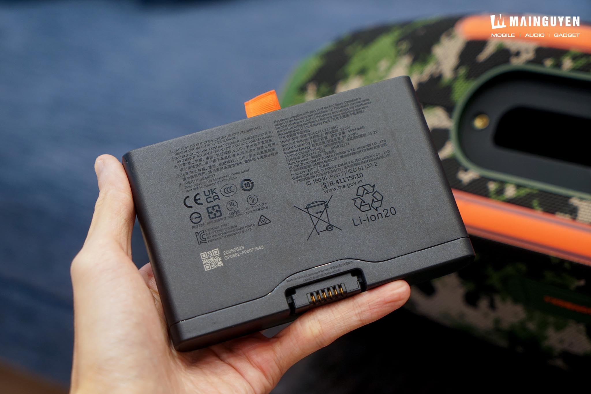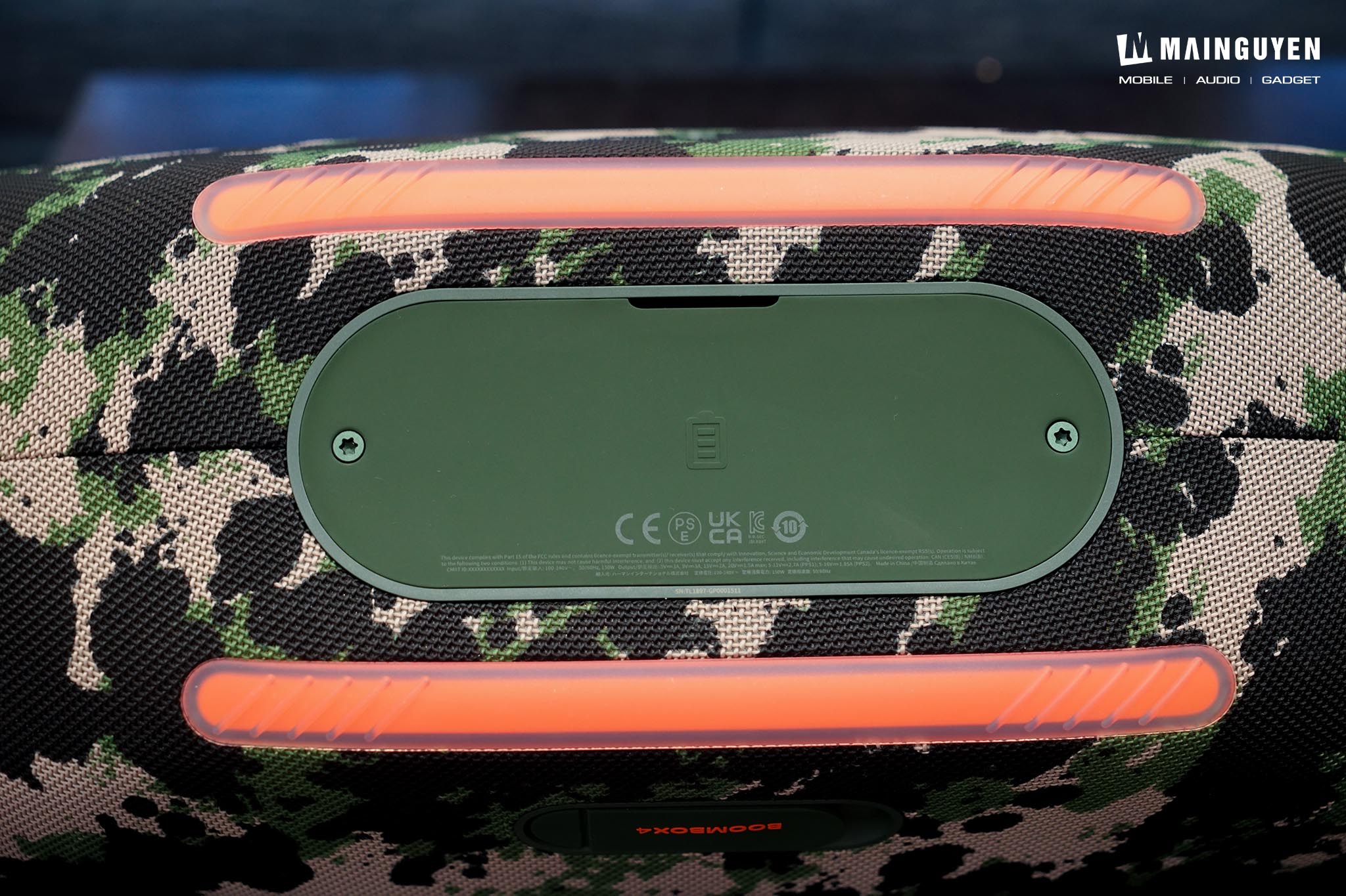 Và điểm nâng cấp mới sáng giá trên Boombox 4 chính là trang bị viên pin có thể tháo rời để tiện sửa chữa hoặc thay thế sau thời gian dài sử dụng bị chai pin. Toàn bộ khoang chứa pin được che đậy rất kín và an toàn thông qua nắp che silicon rất dầy và cố định bằng hai ốc vặn. Viên pin trang bị trên loa Boombox 4 có dung lượng 4.584mAh.