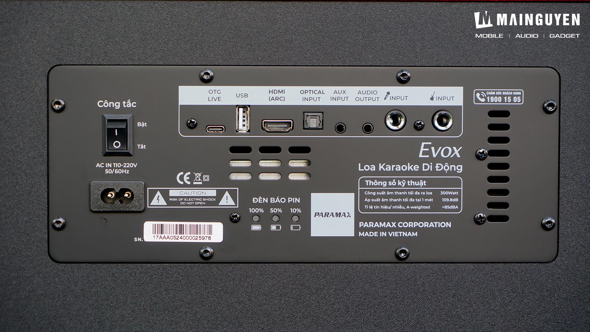 Về thời gian sử dụng, loa karaoke Evox được trang bị bên trong khối pin sạc Lithium-iron (LiFePO4) dung lượng 99.8Wh, loại pin này không chỉ bền hơn mà còn an toàn hơn pin Lithium-ion thông thường. Loa cho mức công suất tối đa 300W, kết hợp chức năng Speaker Pairing (SP) kết nối không dây 2 loa Evox với nhau để mang đến trải nghiệm karaoke trọn vẹn trong mọi bữa tiệc trong nhà lẫn ngoài trời. Tổng kết nhanh, PARAMAX Evox là sự giao thoa thú vị giữa một chiếc loa nghe nhạc Hi-Fi và một hệ thống karaoke chuyên nghiệp. Nếu bạn đã chán những mẫu loa di động phổ thông và muốn tìm kiếm một thứ gì đó có "nội lực" thật sự để khuấy động những buổi tiệc, đây là cái tên rất đáng để trải nghiệm.