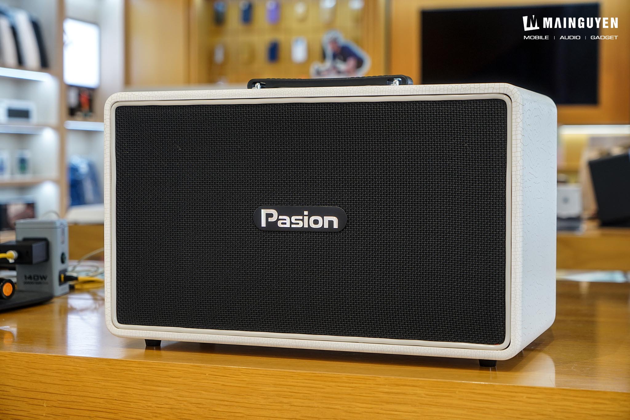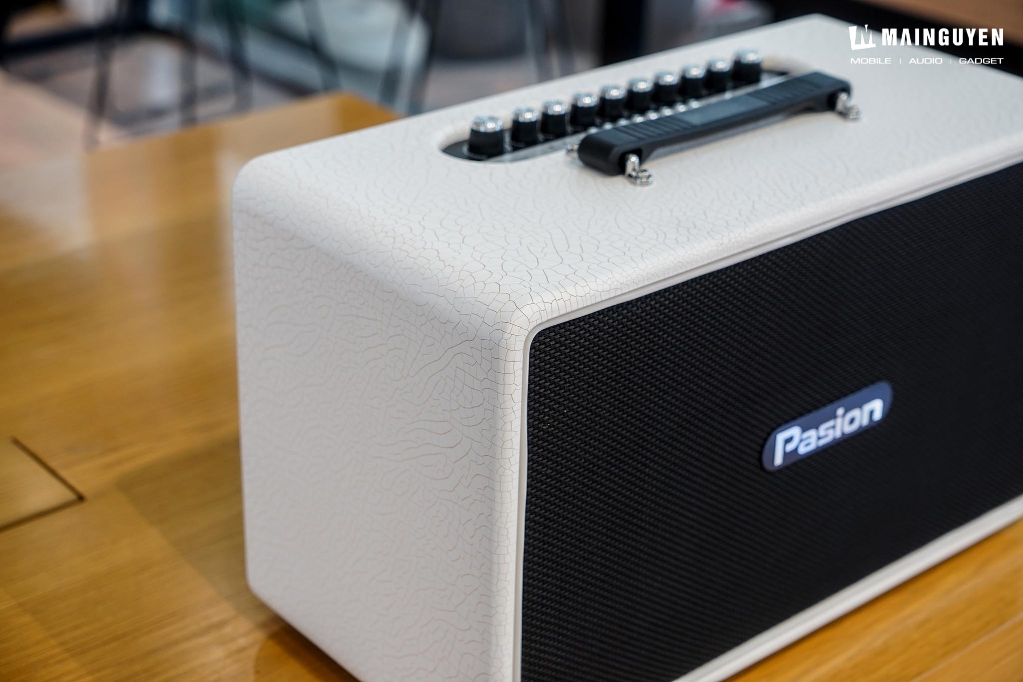 Loa karaoke di động PASION Arte có độ hoàn thiện tốt và chắn chắn, phần lưới bảo vệ màng loa bên trong mang đến sự cao cấp nhất định. Phía trên sẽ có phần quai xách để thuận tiện khi di chuyển.