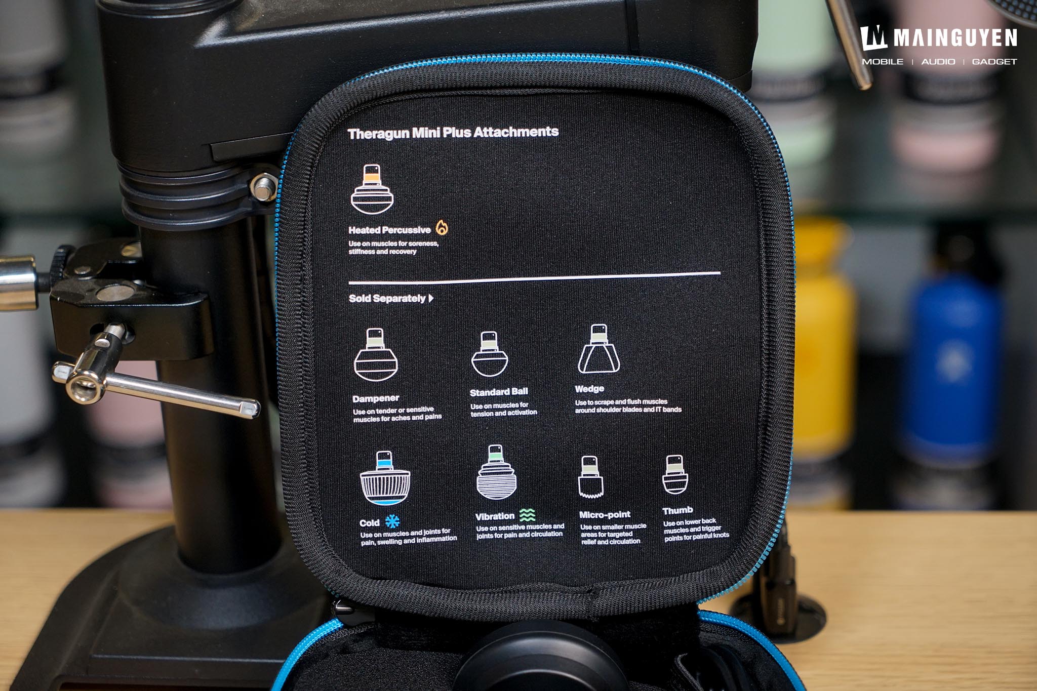 Với phiên bản Theragun Mini Plus, Therabody đã đưa khái niệm Mini lên một tầm cao mới bằng cách bổ sung một tính năng chuyên nghiệp chỉ có ở các dòng Pro cao cấp: Liệu pháp nhiệt tích hợp. Phụ kiện đi kèm trên phiên bản Theragun Mini Plus ngoài sợi cáp sạc sử dụng cổng USB-C, túi đựng có in logo Therabody thì sẽ chỉ có duy nhất một đầu mát xa nhiệt, thay vì có tận 3 đầu mút mát xa thay thế khác nhau như trên phiên bản Mini 3.