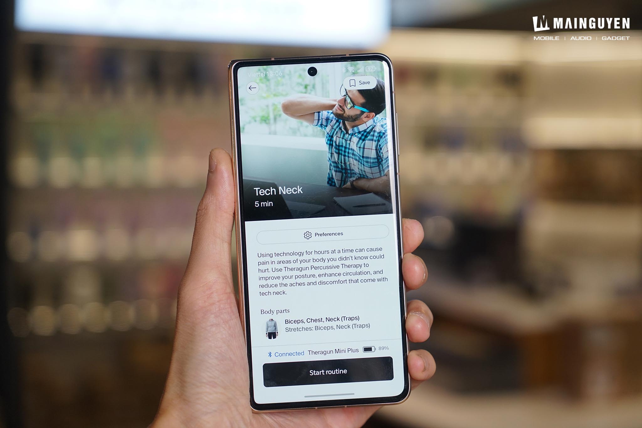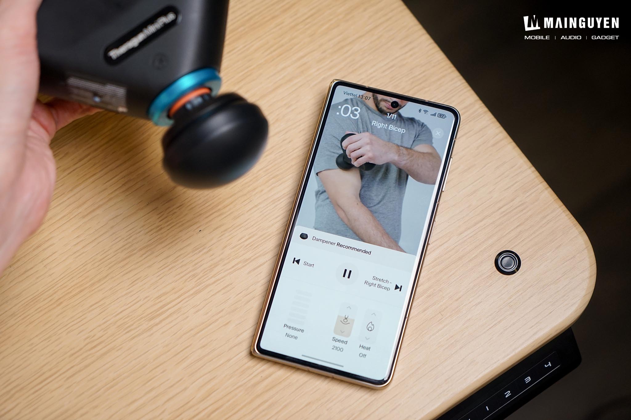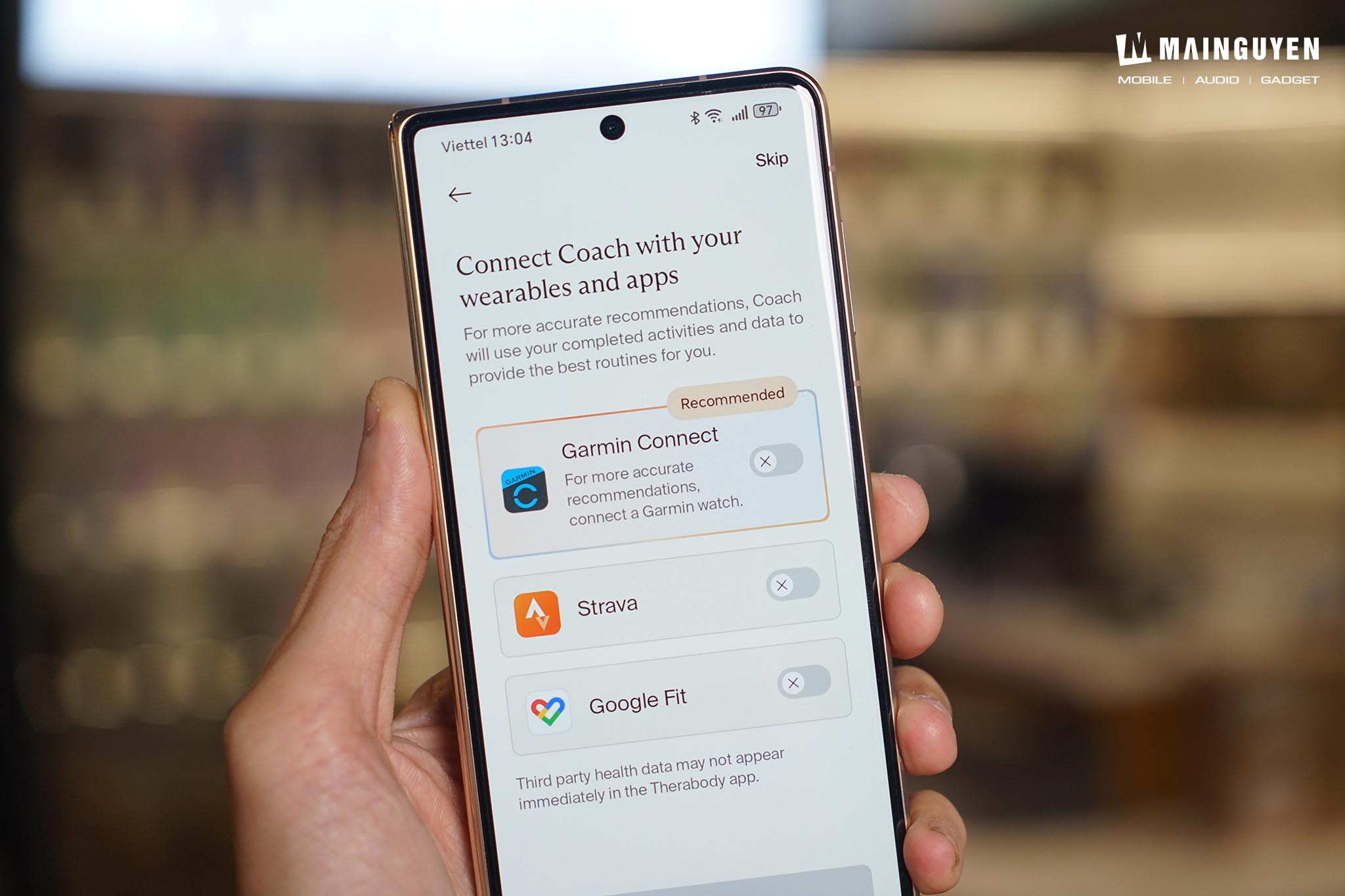 Theragun Mini Plus vẫn sẽ có app đi kèm tên Therabody, hỗ trợ nền tảng Android và iOS. Ở lần khởi động đầu tiên, ứng dụng sẽ có vài khảo sát nhanh để biết được nhu cầu sử dụng của bạn như thế nào, từ đó đưa ra những gợi ý chính xác nhất có thể, nếu bạn không rõ thì cứ bỏ qua. Ứng dụng hỗ trợ rất nhiều dòng máy mát xa cầm tay khác nhau, bạn chỉ việc chọn đúng sản phẩm đang dùng và ứng dụng sẽ tự động quét, tốc độ nhận diện và kết nối không dây Bluetooth rất nhanh. Ngoài ra, ứng dụng Therabody cũng hỗ trợ đồng bộ dữ liệu sức khỏe với Google Fit và Strava để dễ dàng quản lý, cá nhân mình hy vọng hãng sẽ hỗ trợ thêm nhiều ứng dụng bên thứ ba.