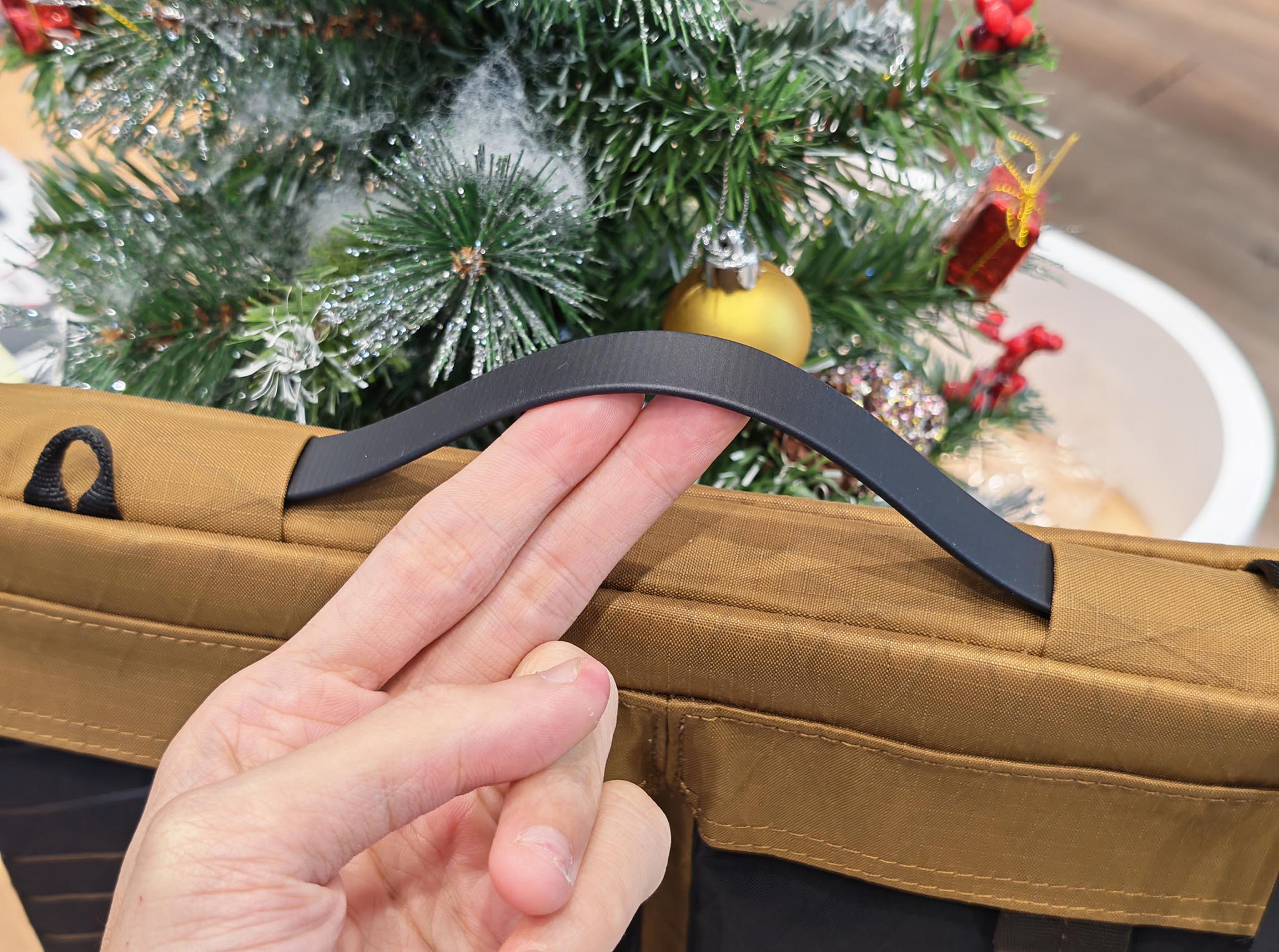 Thiết kế tay cầm ẩn cũng là chi tiết được đánh giá cao. Khi không cần, tay cầm sẽ được rút gọn phẳng vào thân túi, biến JAGER trông gọn gàng hơn. Và khi cần di chuyển ngắn, nó lại trở thành tay xách tiện lợi, tăng tính linh hoạt.