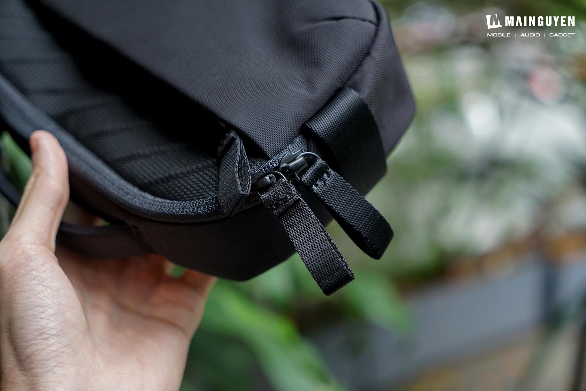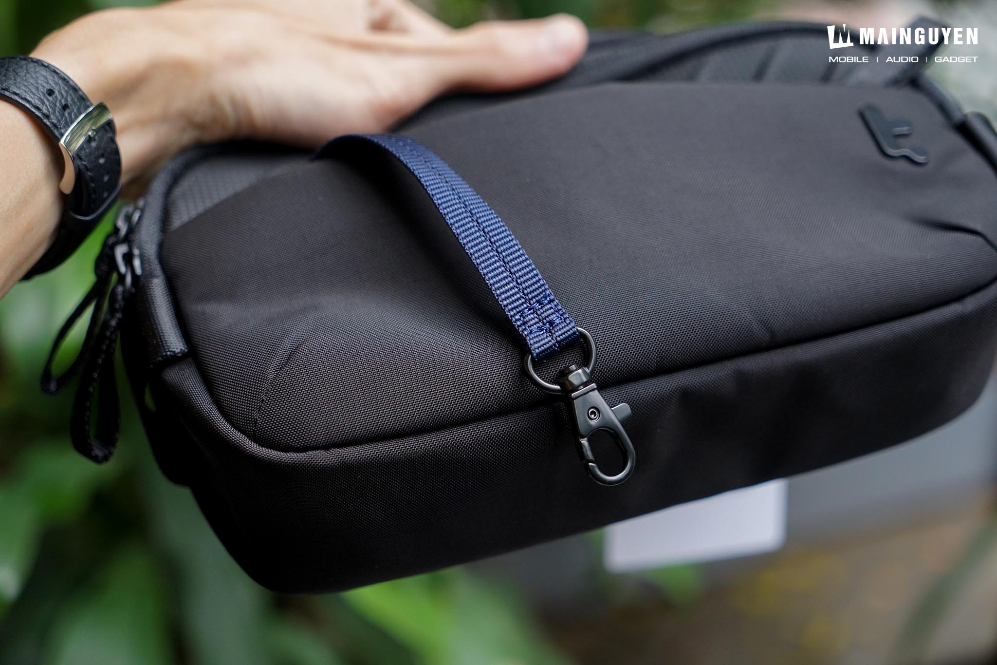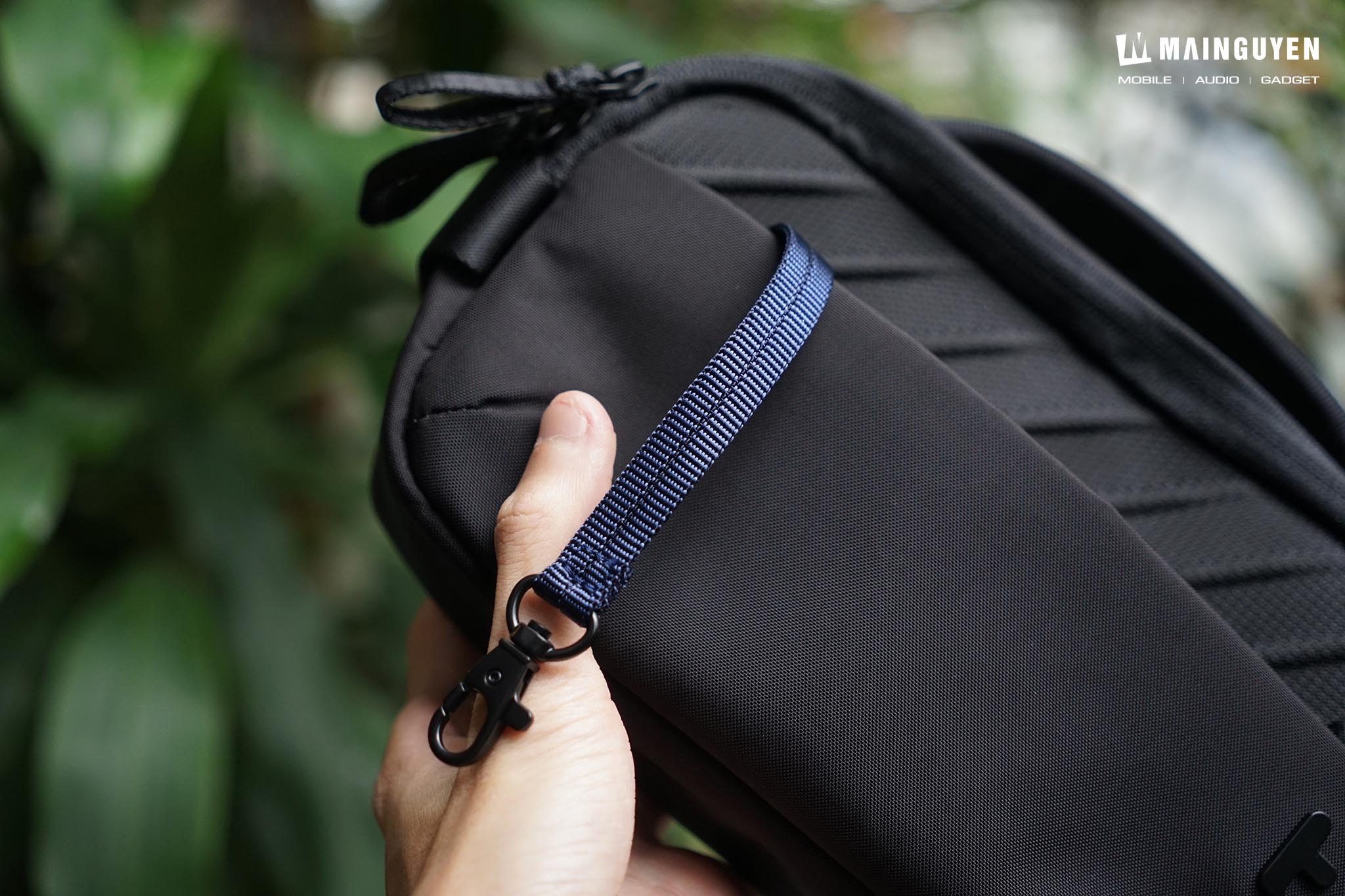Thêm một ngăn phụ khác ở mặt trước của túi cũng có khóa kéo, bên trong có một dây móc chìa khóa với một kẹp kim loại cao cấp và bền hơn thay vì chất liệu nhựa. Bạn có thể dùng ngăn này để đựng tai nghe, ví hoặc các vật dụng có kích thước nhỏ và cần lấy nhanh.