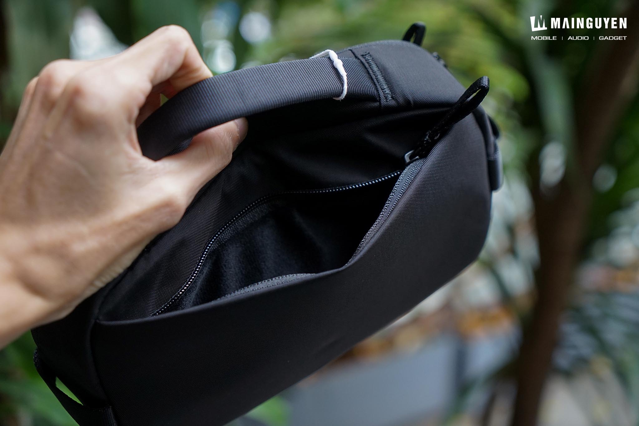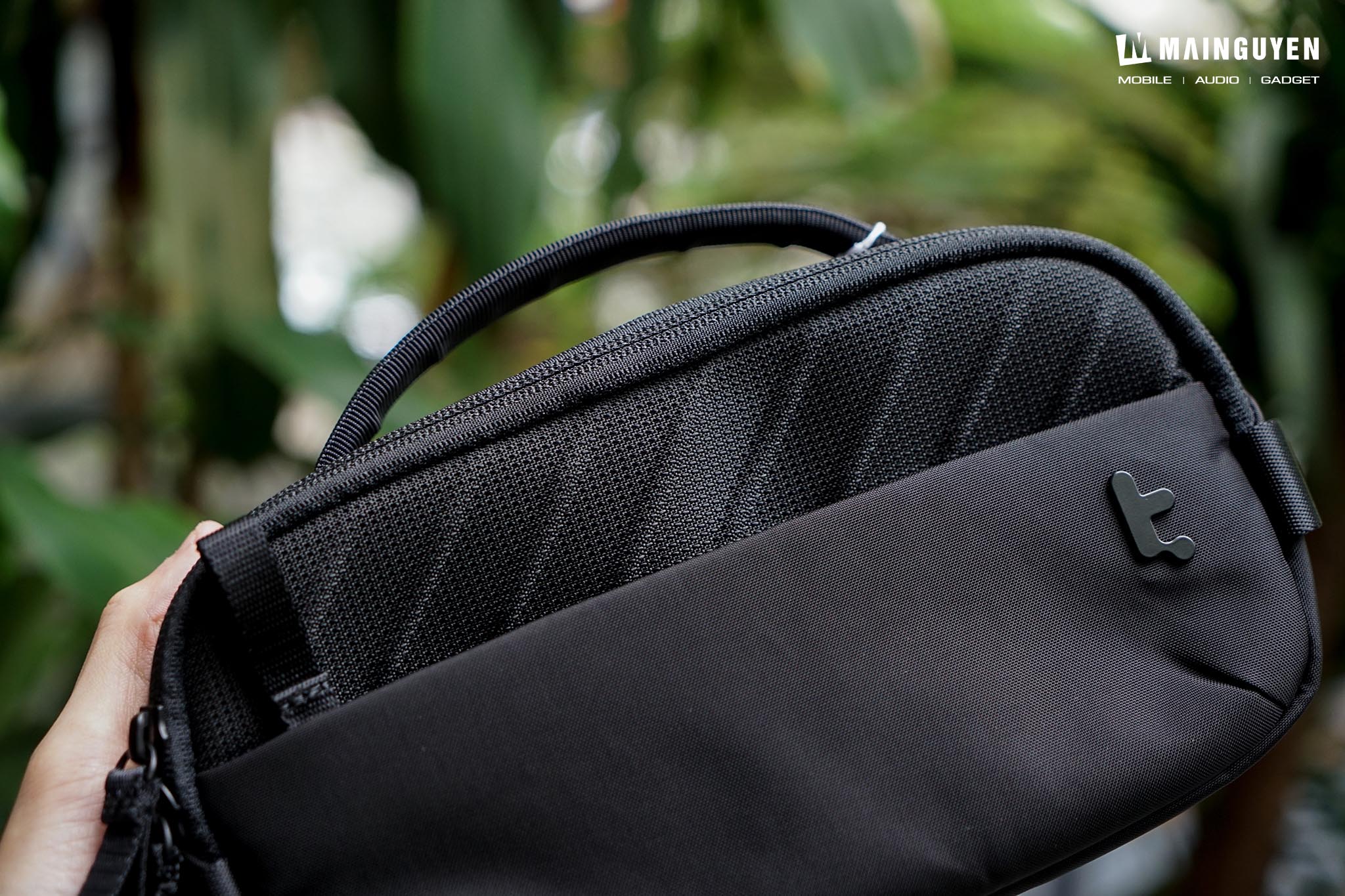 Có một tay cầm lớn hơn ở phía trên để cầm và xách thoải mái hơn, đồng thời túi TOMTOC Voyage T-29 có thể đứng vững trên mặt bàn để bạn tiện lấy đồ nhanh. Một ngăn phụ ở mặt sau của túi với khóa kéo để đảm bảo an toàn, bên trong sử dụng chất liệu vải nhung rất êm và mềm, có đệm nên rất hợp lý để bạn đựng điện thoại không lo bị trầy xước.