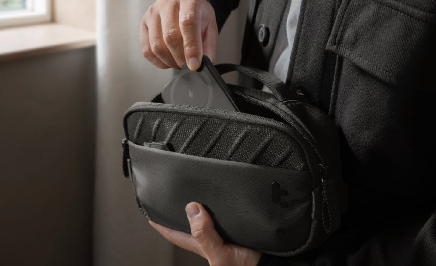 Trên tay túi đựng phụ kiện TOMTOC Voyage T-29